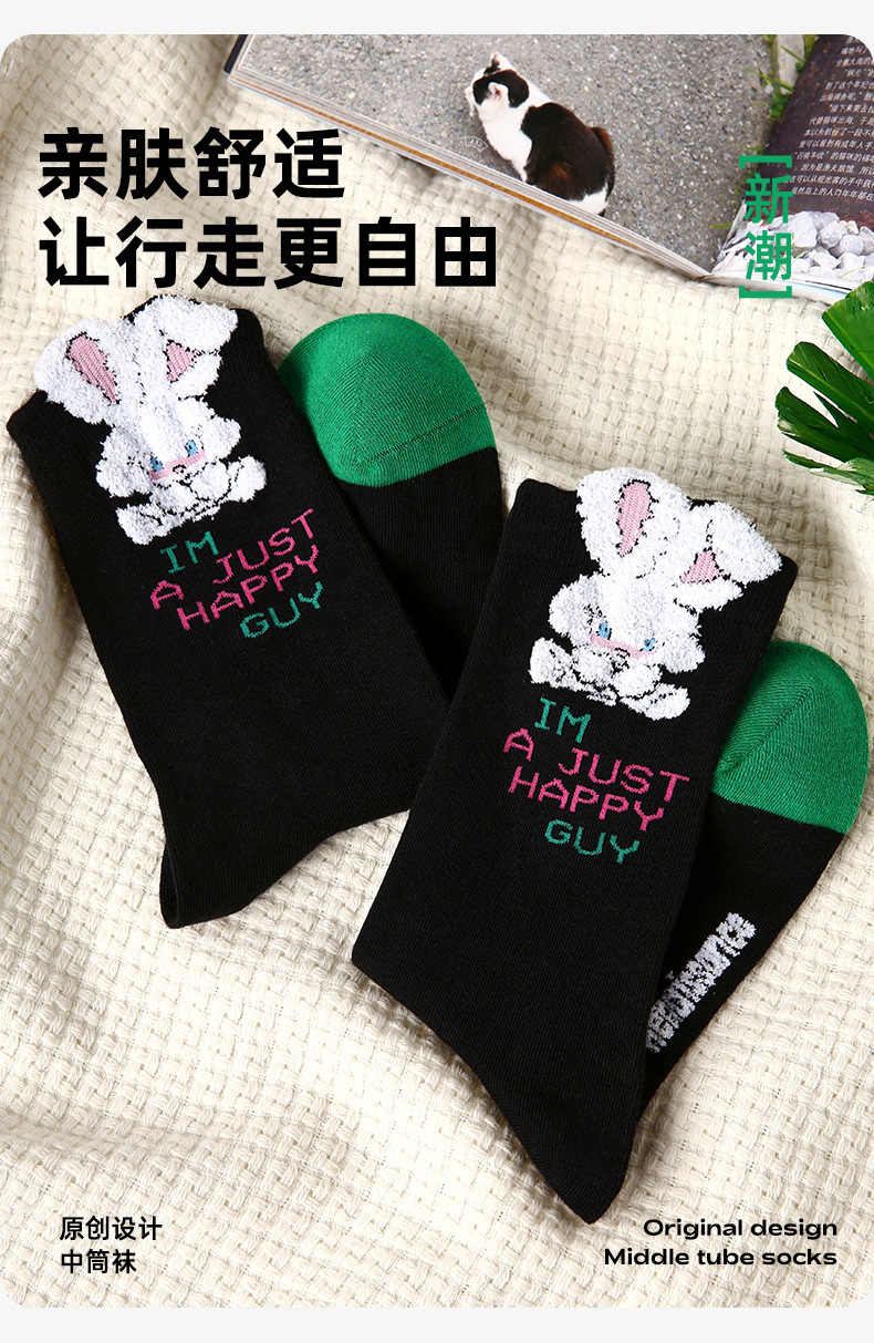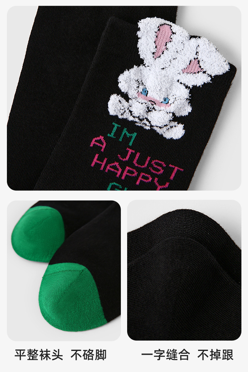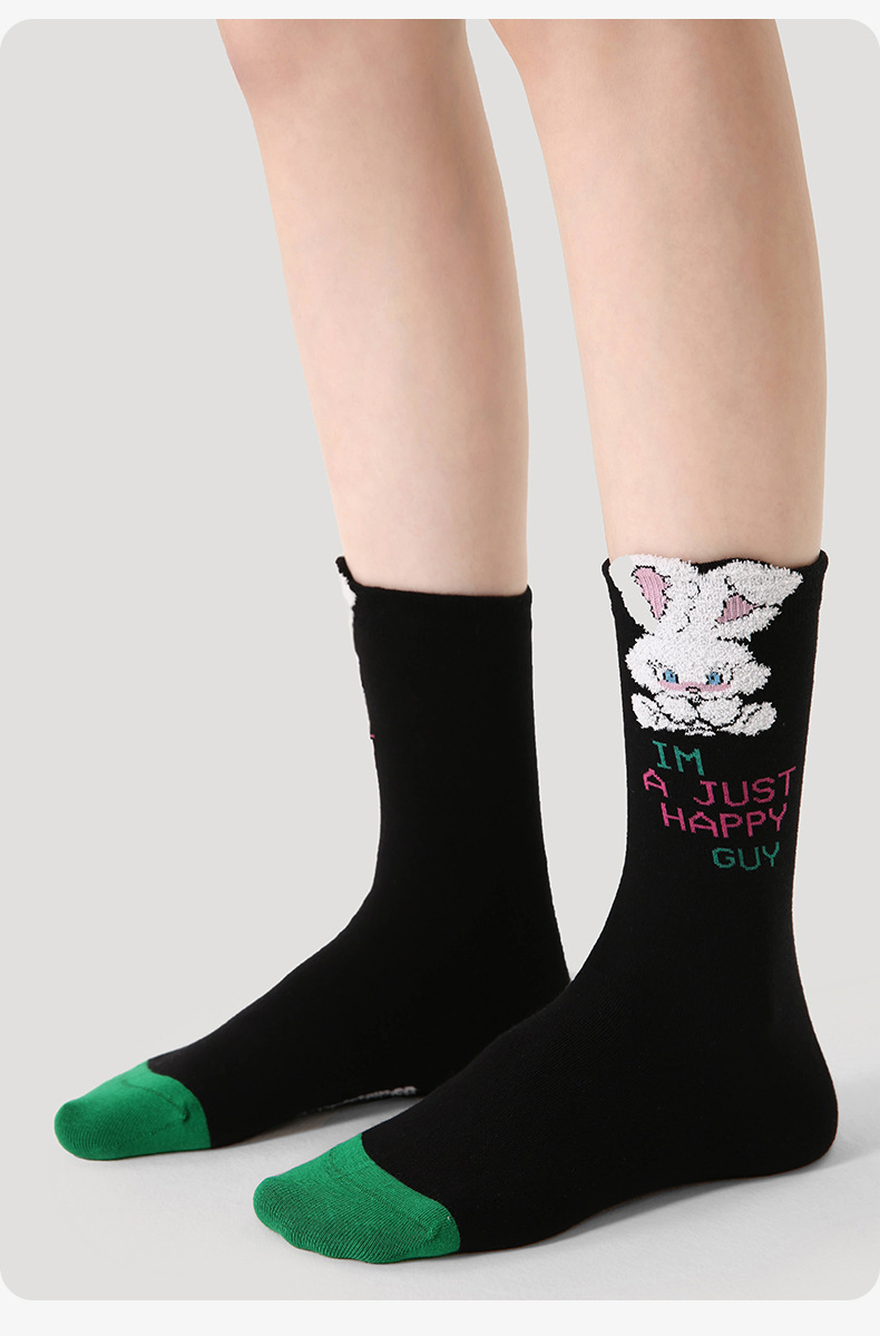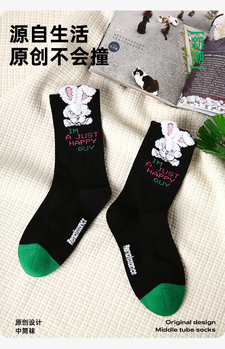르네상스 양말 여성의 귀여운 토끼 학술 스타일 가리 편지 뼈없는 빗 코튼 미드 양말 얇은 통기성