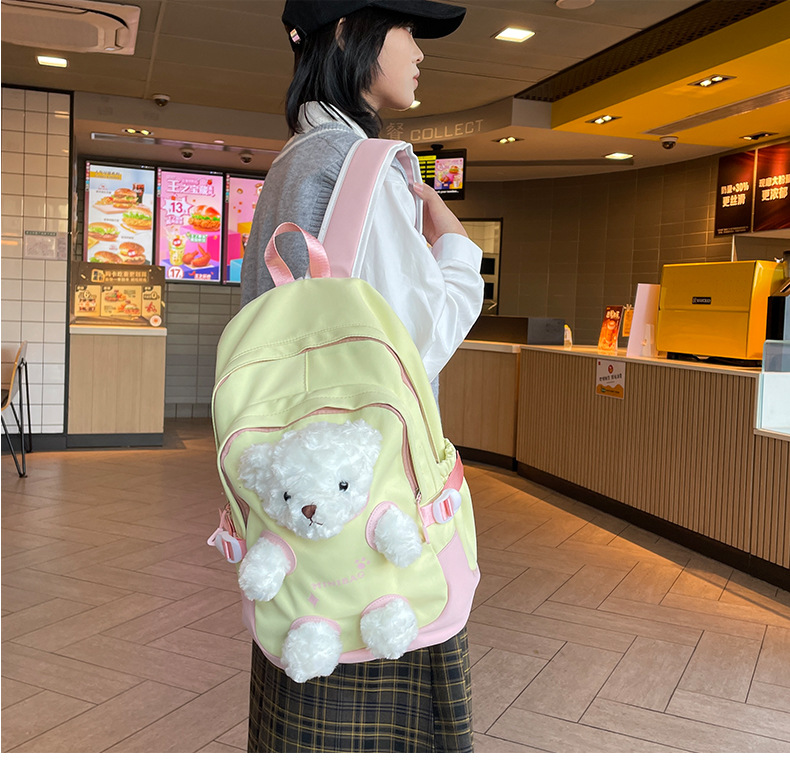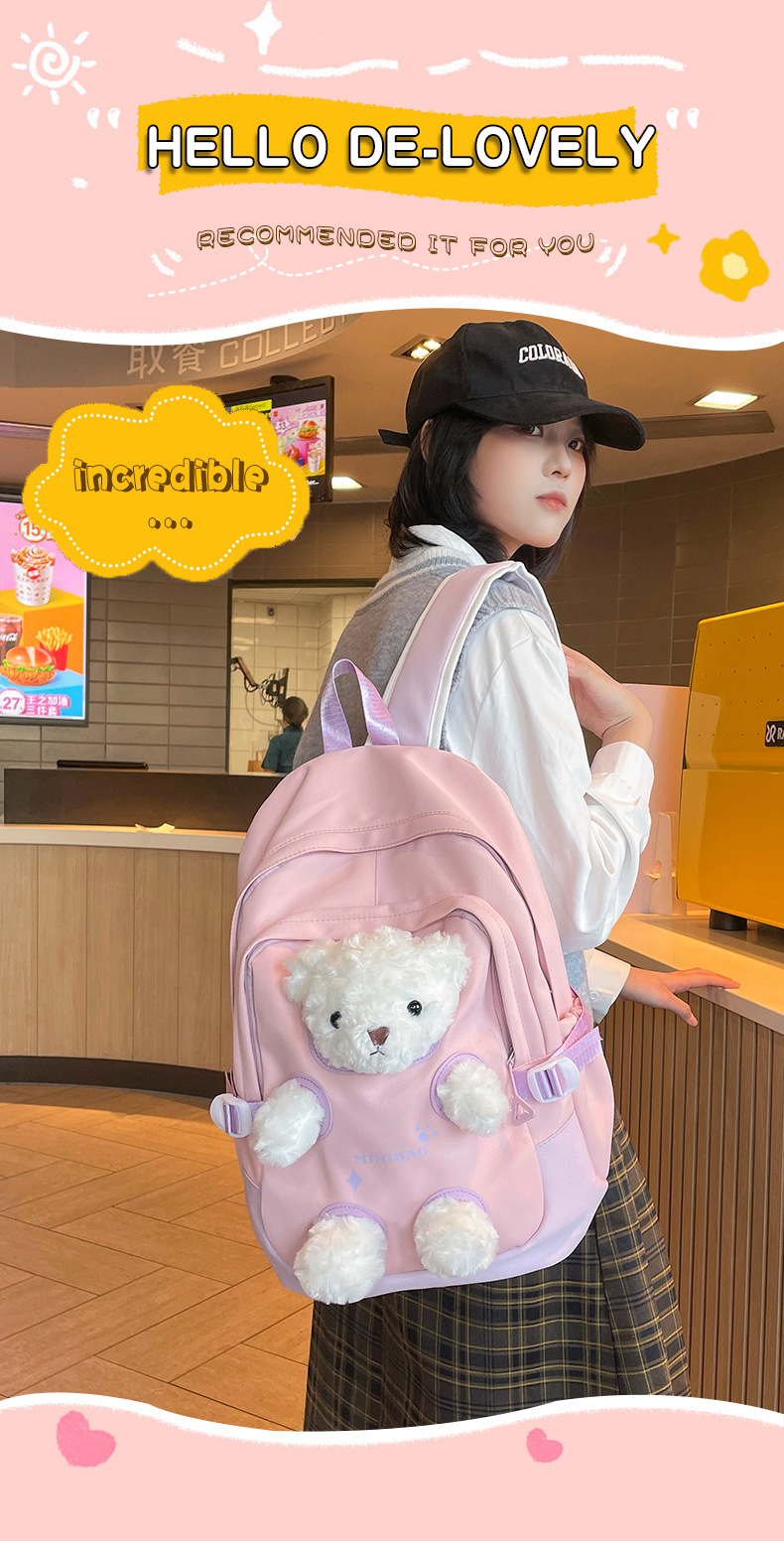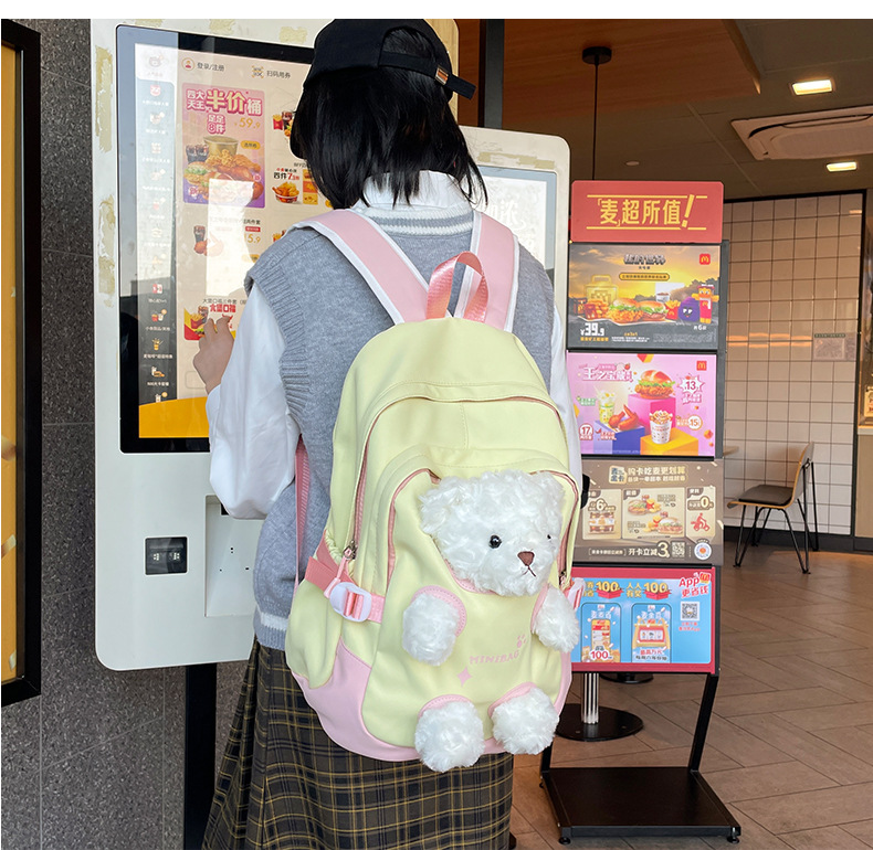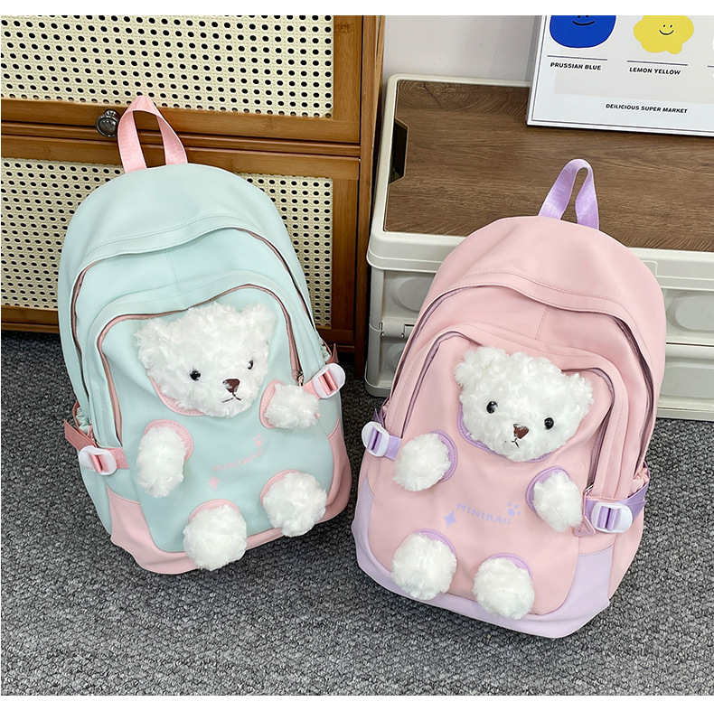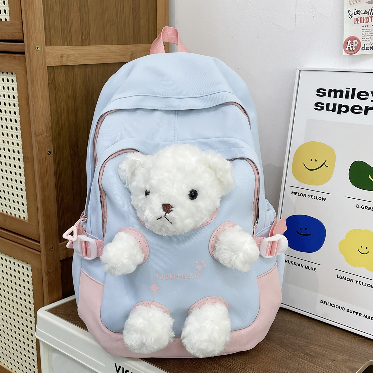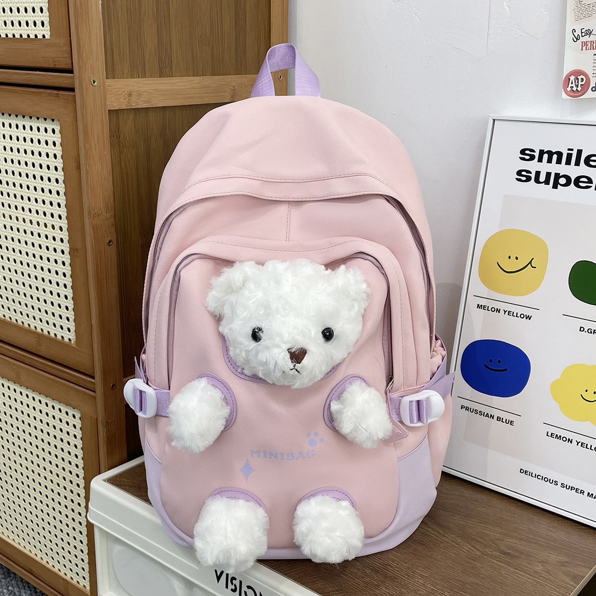 어린이 배낭 귀여운 봄 나들이 초등학교 가방 여행 곰 인형 패션 소녀 중학교 배낭