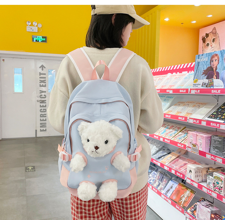 어린이 배낭 귀여운 봄 나들이 초등학교 가방 여행 곰 인형 패션 소녀 중학교 배낭스토어 가기