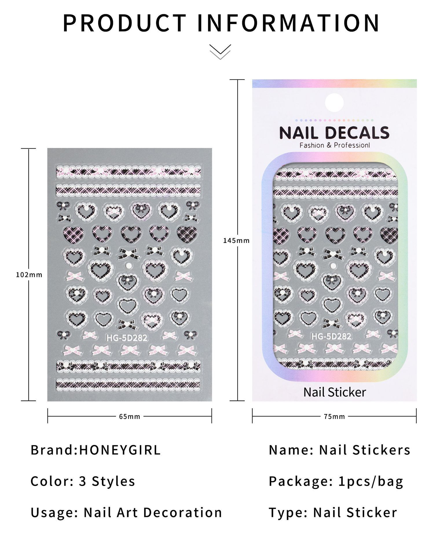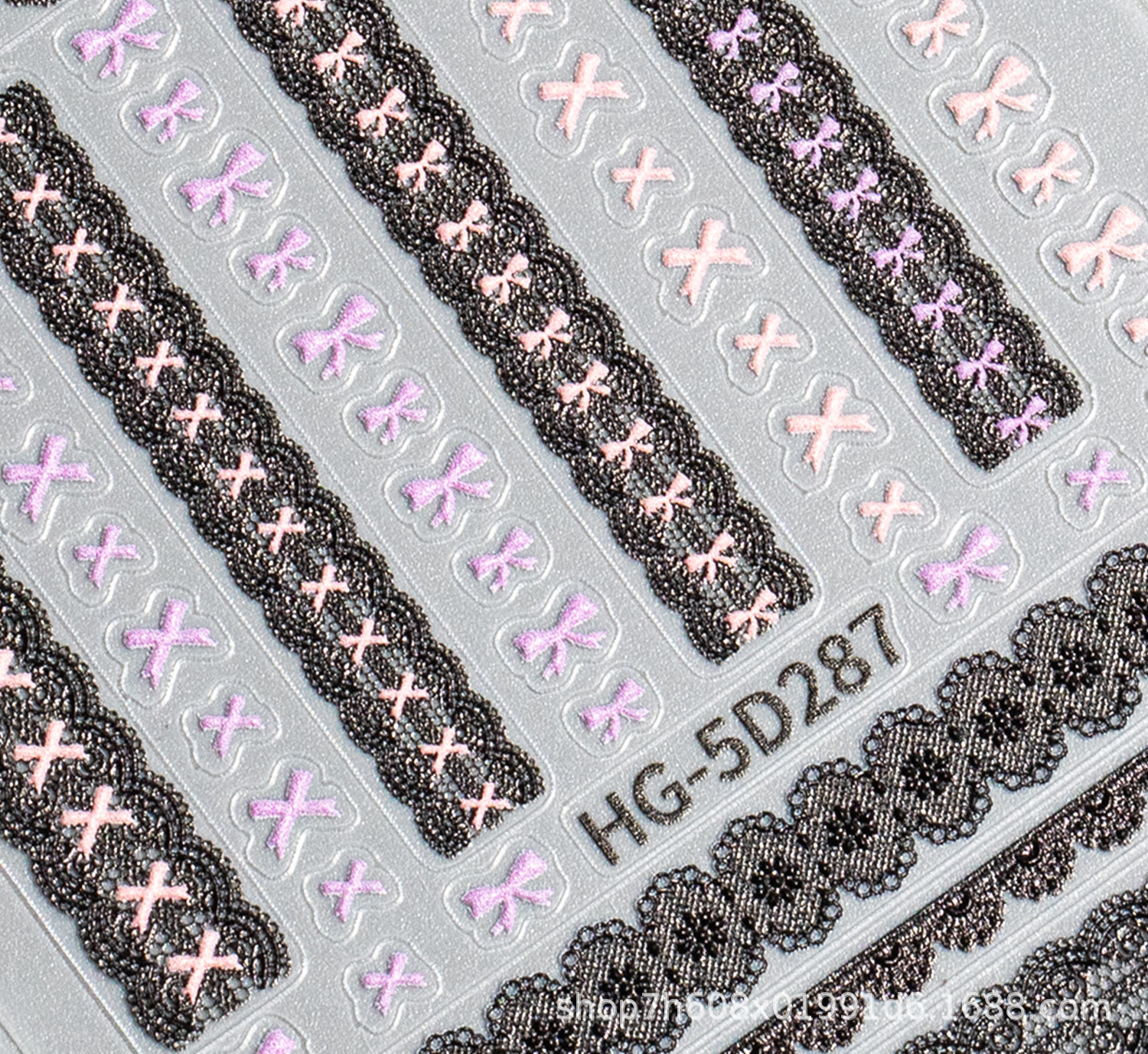 순수한 욕망 레이스 네일 스티커 쥬얼리 5D 양각 달콤한 멋진 입체 흑백 레이스 네일 아트 스티커 HG 스타일스토어 가기