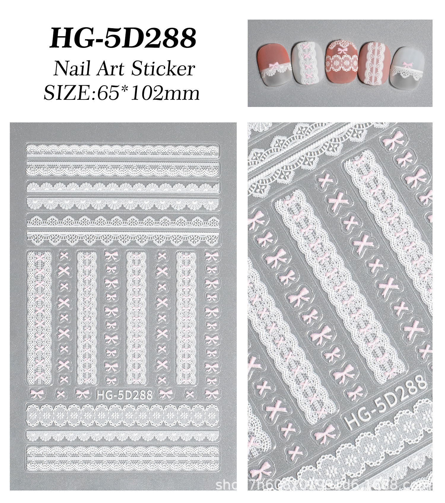 순수한 욕망 레이스 네일 스티커 쥬얼리 5D 양각 달콤한 멋진 입체 흑백 레이스 네일 아트 스티커 HG 스타일