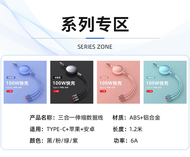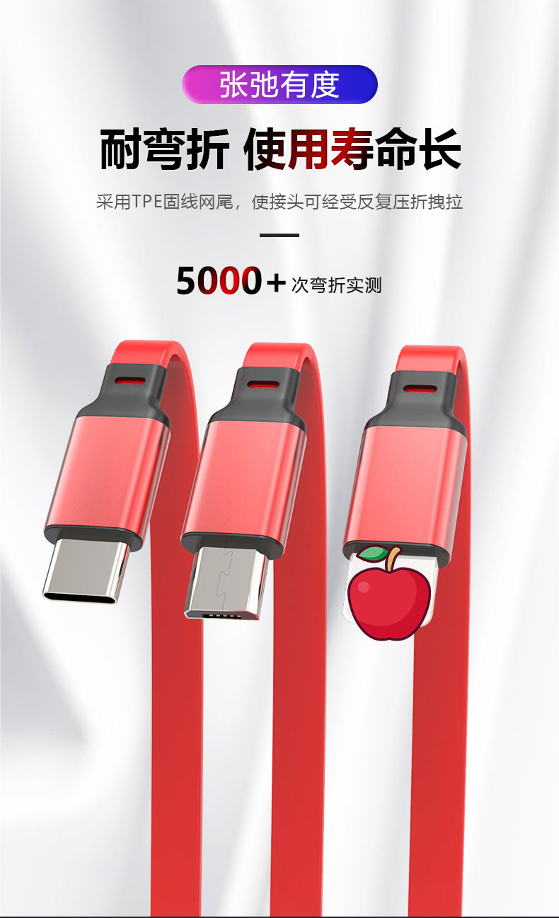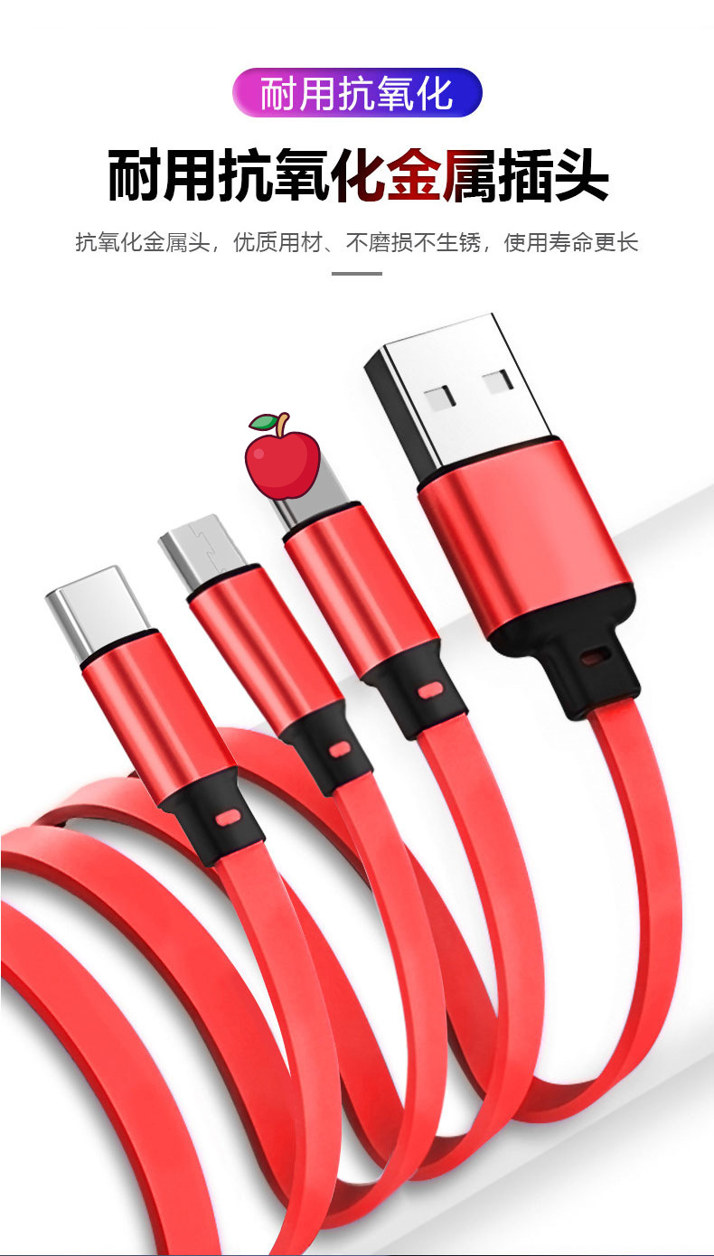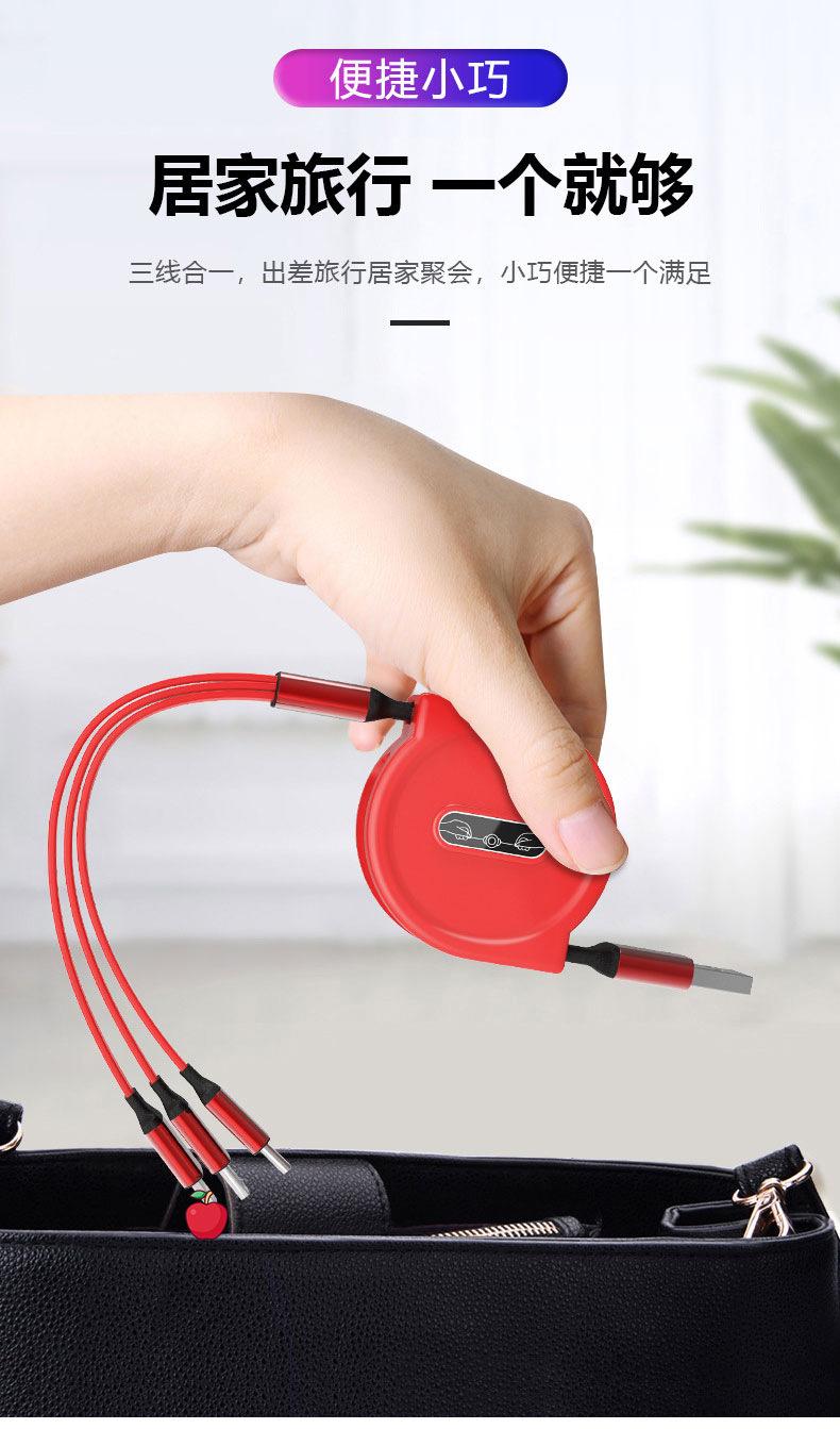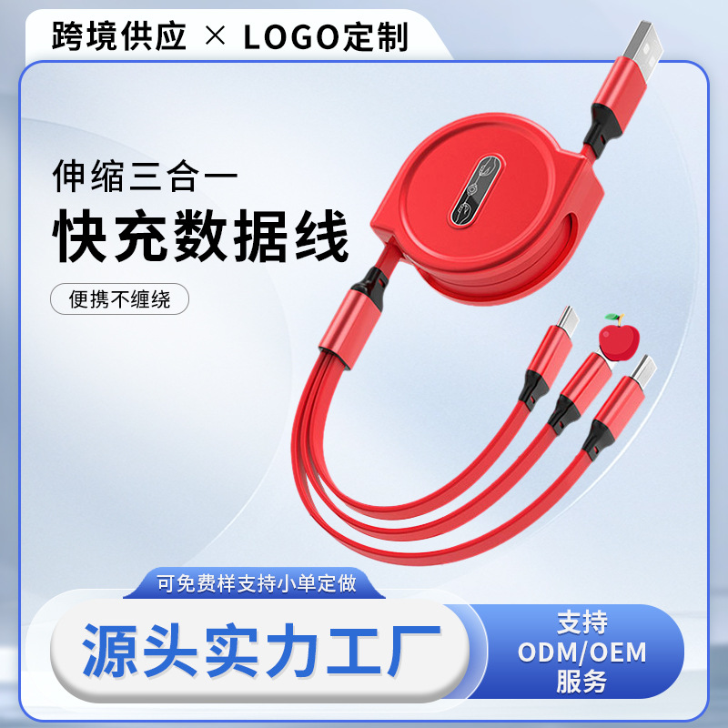 마카롱 1-3 데이터 케이블 도매 휴대용 텔레스코픽 충전 케이블 3-in-1 휴대폰 고속 충전 케이블 광고 로고