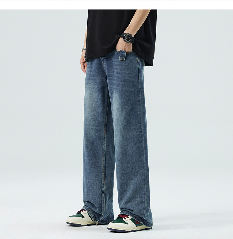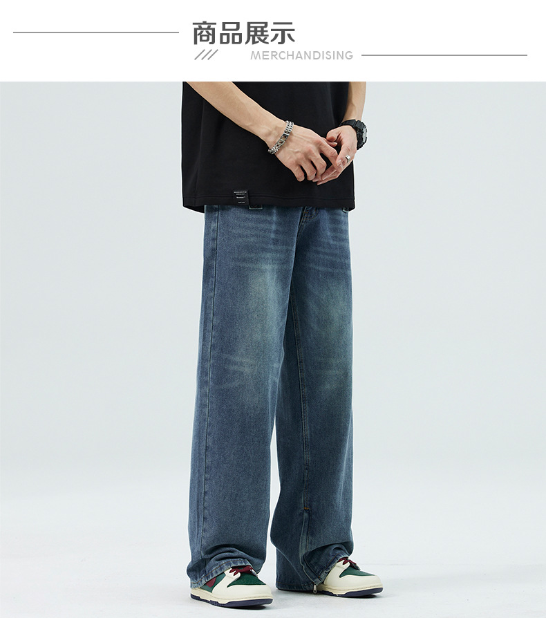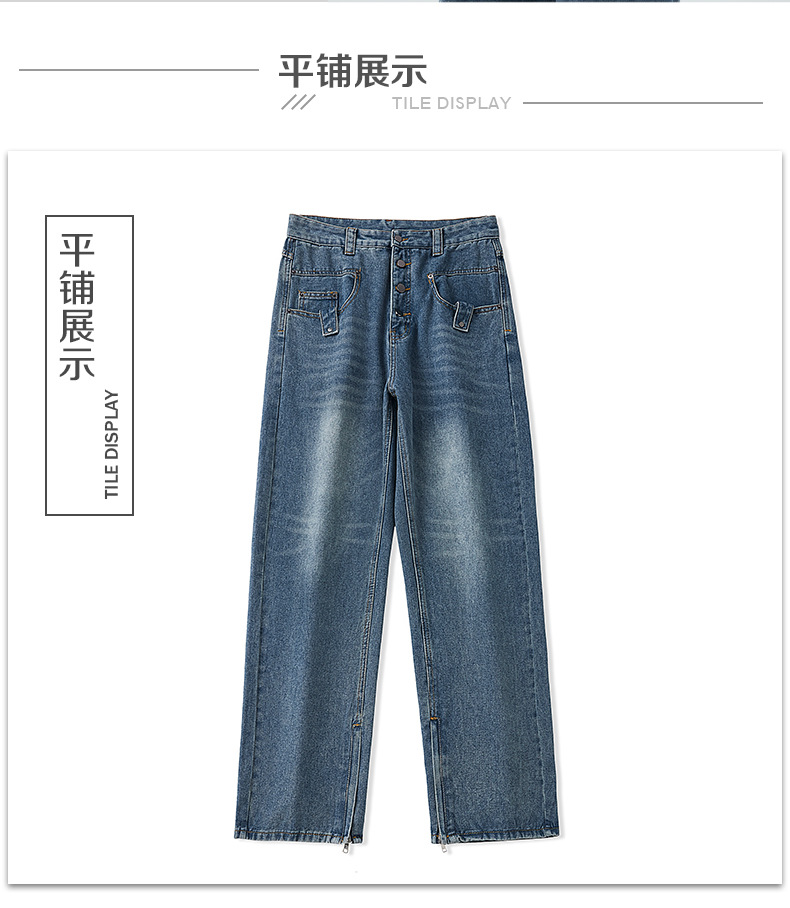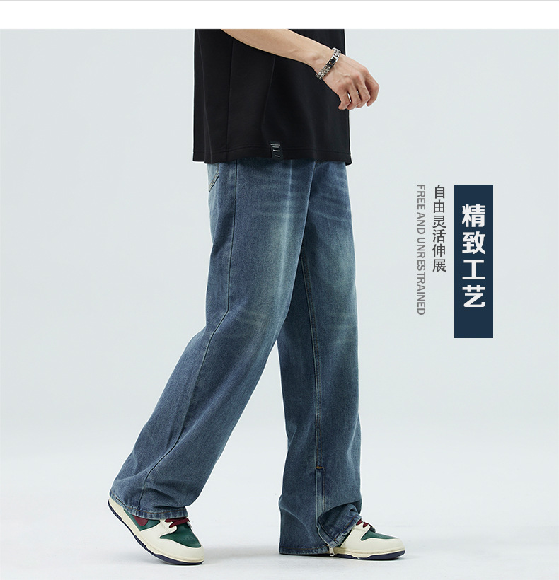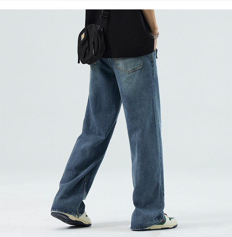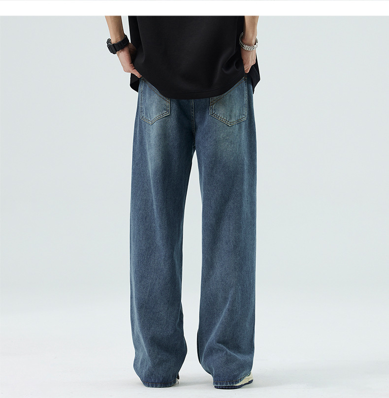 아메리칸 스타일 레트로 블루 청바지 남성용 트렌디 2024 새로운 봄과 가을 청소년 지퍼 느슨한 스트레이트 바지스토어 가기