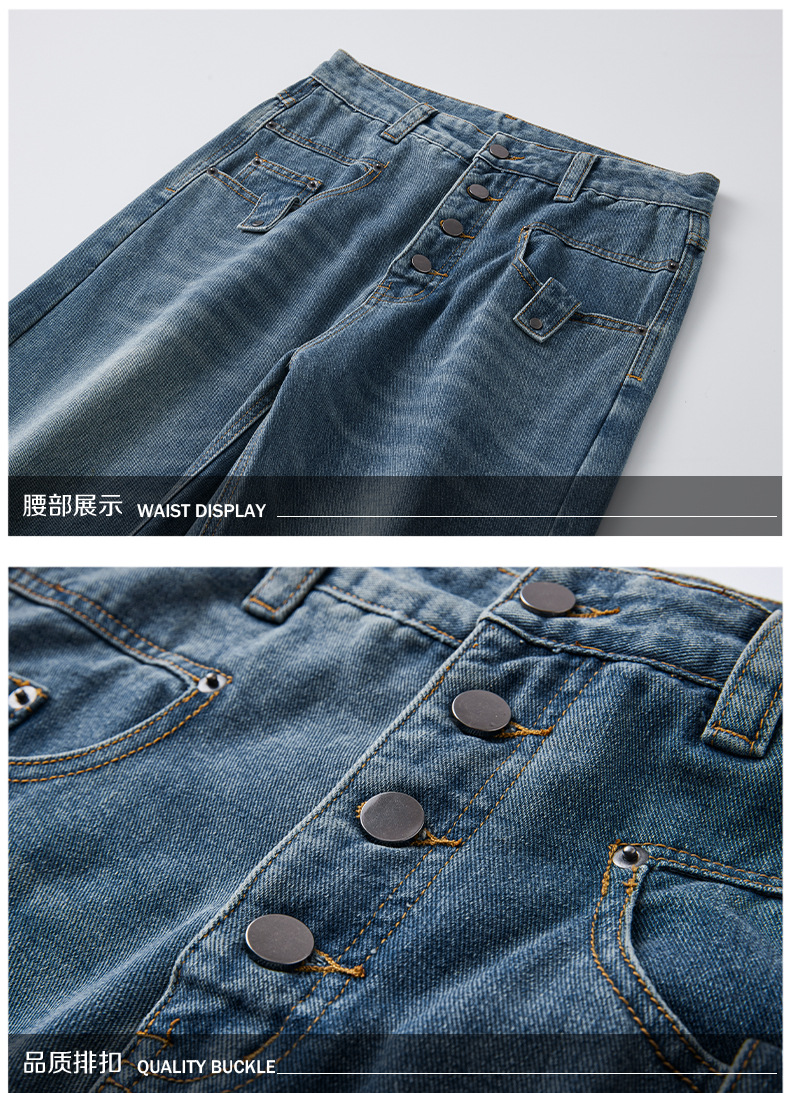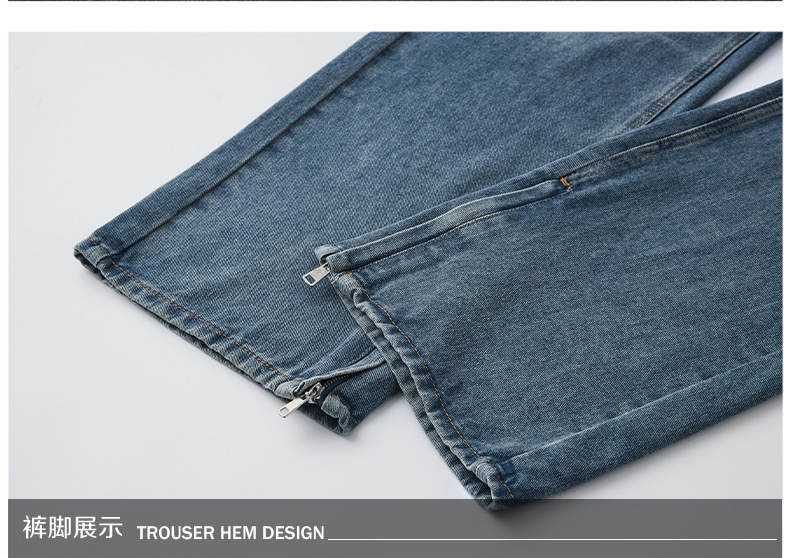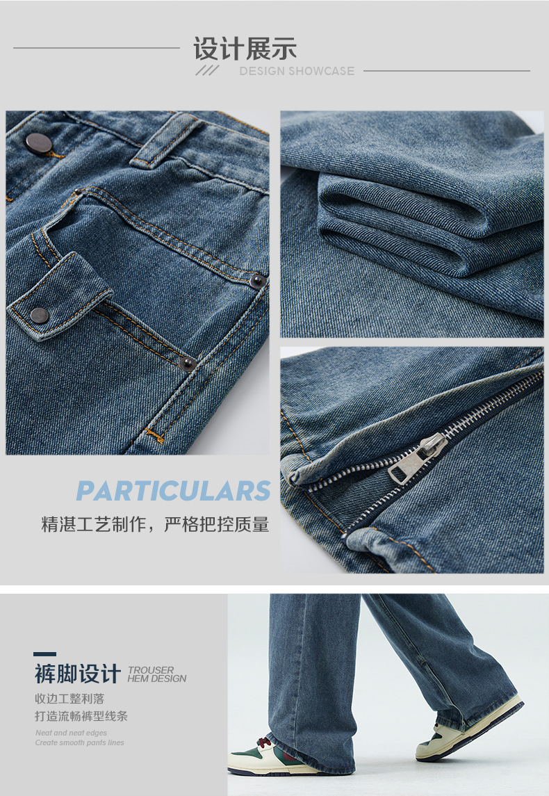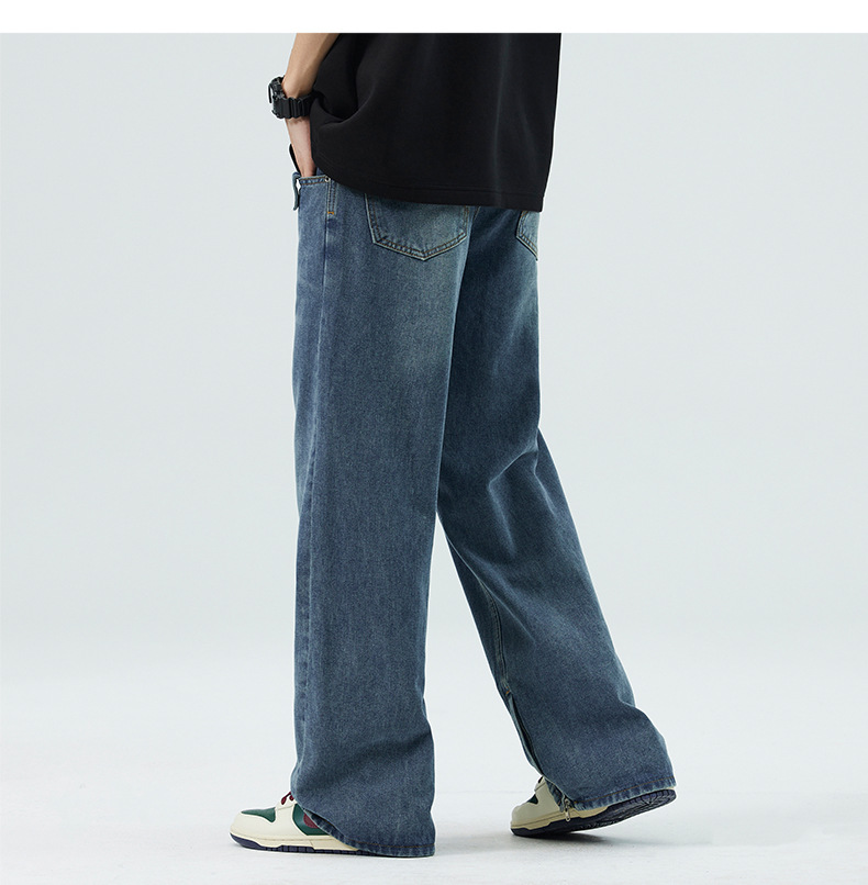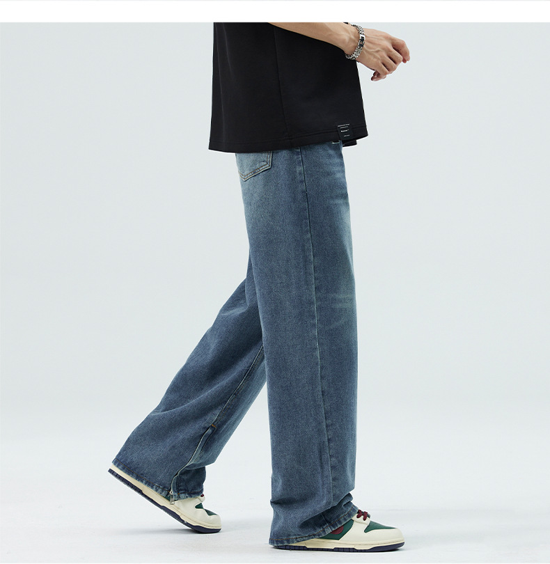 아메리칸 스타일 레트로 블루 청바지 남성용 트렌디 2024 새로운 봄과 가을 청소년 지퍼 느슨한 스트레이트 바지스토어 가기