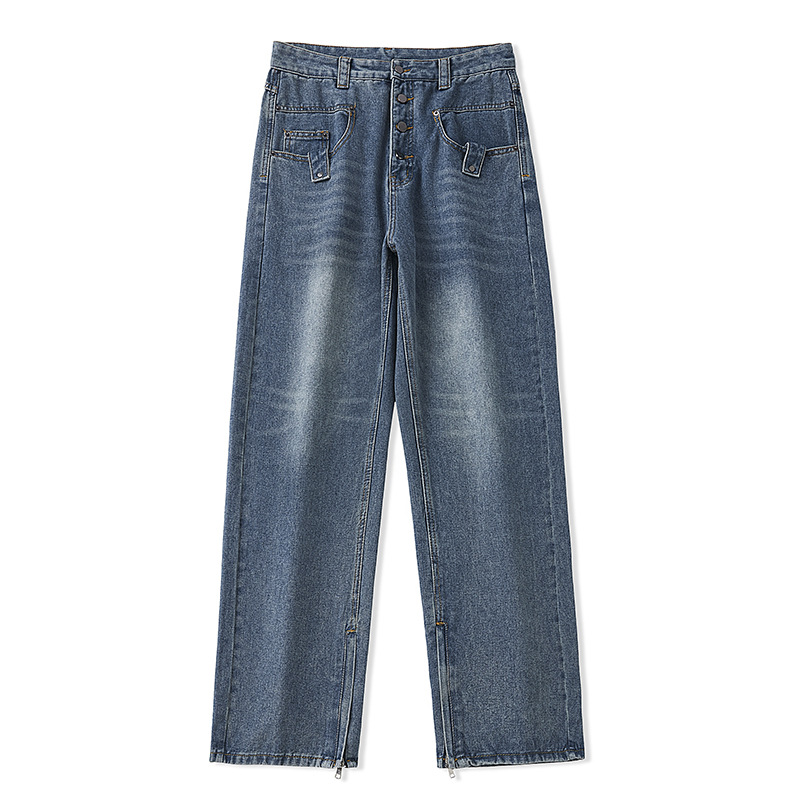 아메리칸 스타일 레트로 블루 청바지 남성용 트렌디 2024 새로운 봄과 가을 청소년 지퍼 느슨한 스트레이트 바지