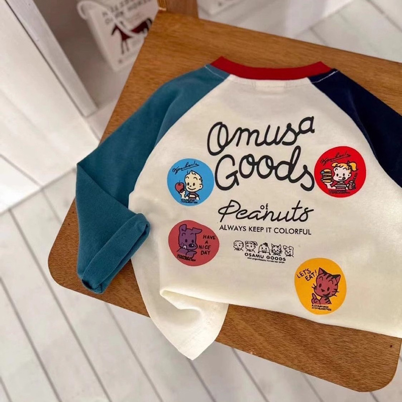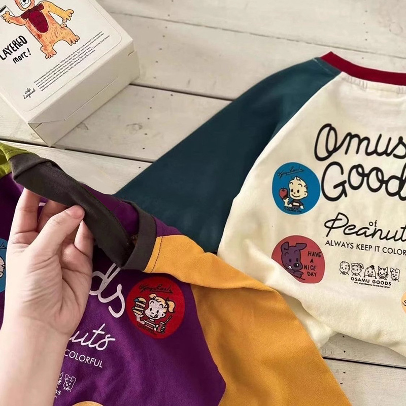 면 남성과 여성의 어린이 티셔츠 긴 소매 톱 2025 새로운 컬러 매칭 만화 캐주얼 올 매치베이스 셔츠 봄과 가을스토어 가기