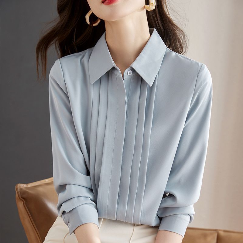 패션 우아한 긴 소매 쉬폰 셔츠 여자의 2023 가을 새로운 통근 느슨한 셔츠 올 매치 유럽 정상스토어 가기