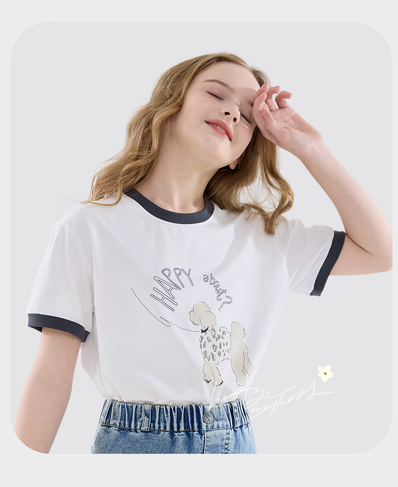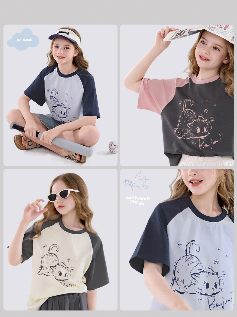 여자 반팔 티셔츠 여름 2025 새로운 어린이 세련 된 유행 탑 큰 어린이 소녀 루즈베이스 셔츠스토어 가기