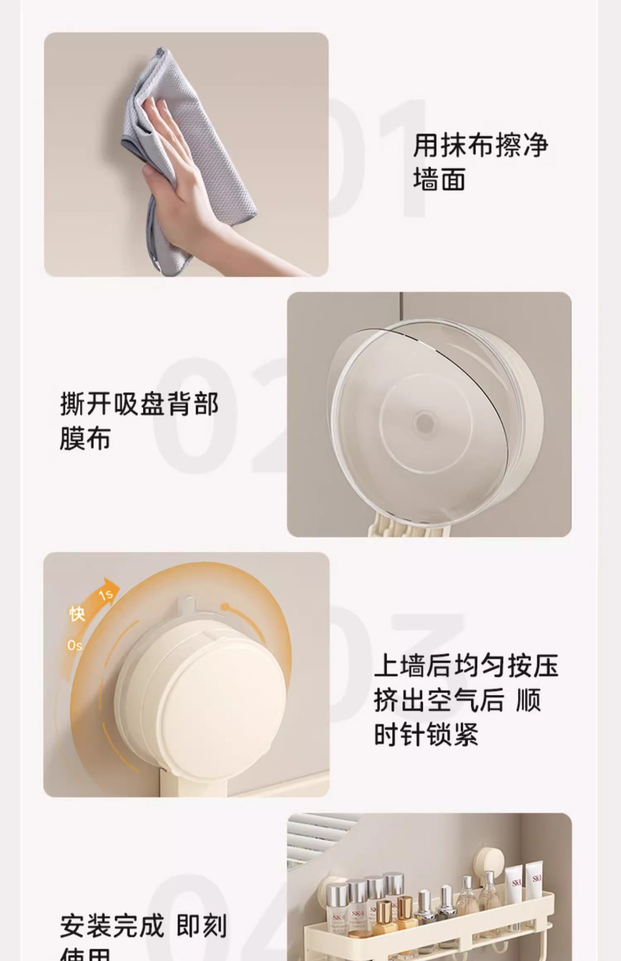 • 흡입 컵 유백색 - 후크가 있는 60cm 막대