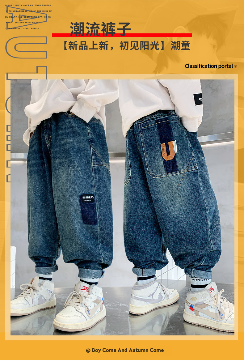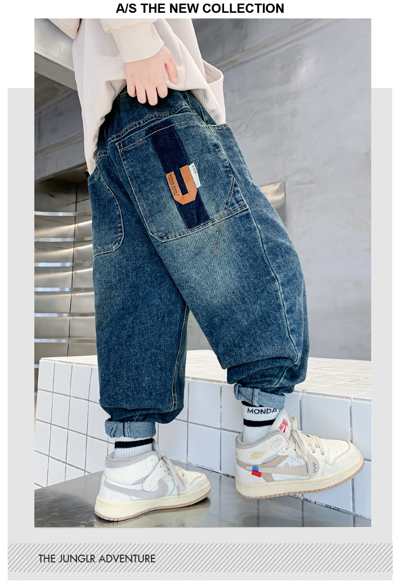 남아 바지 봄 가을 청바지 2024 신상 아동 가을 의류 남아 스트리트 패션 바지 트렌디하고 멋스럽고 패셔너블합니다스토어 가기