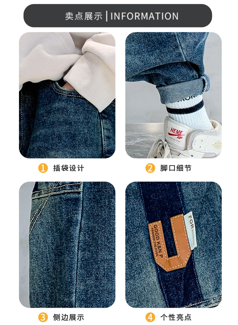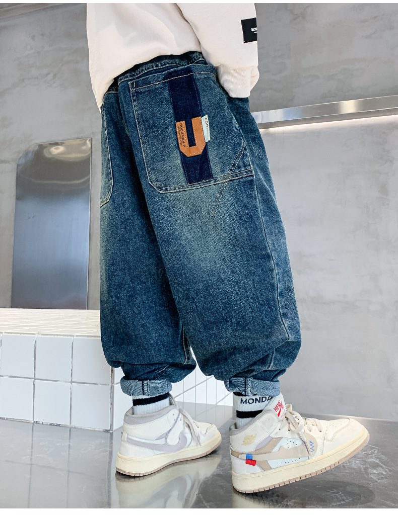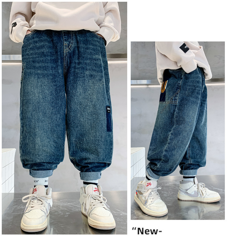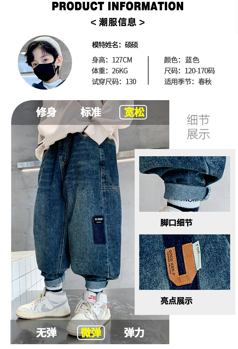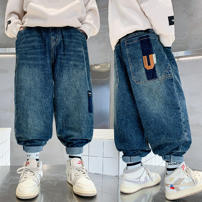 남아 바지 봄 가을 청바지 2024 신상 아동 가을 의류 남아 스트리트 패션 바지 트렌디하고 멋스럽고 패셔너블합니다