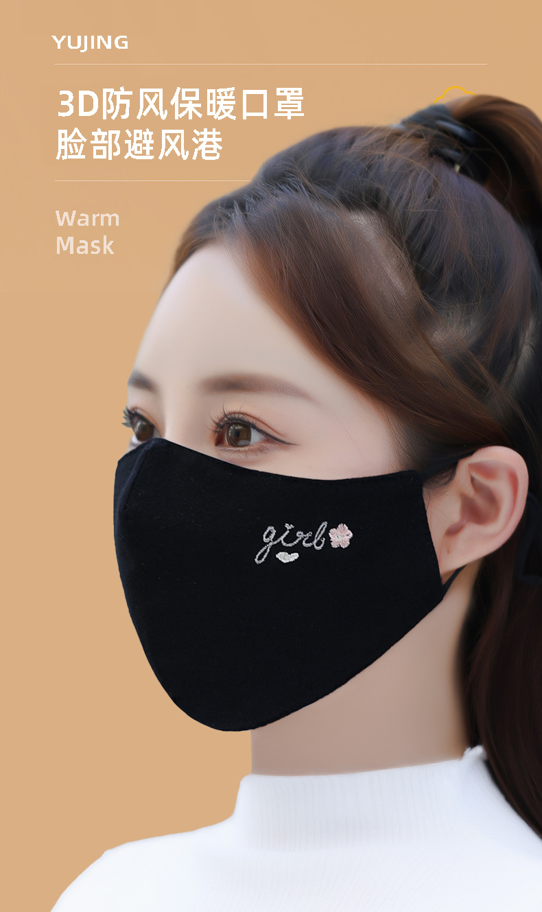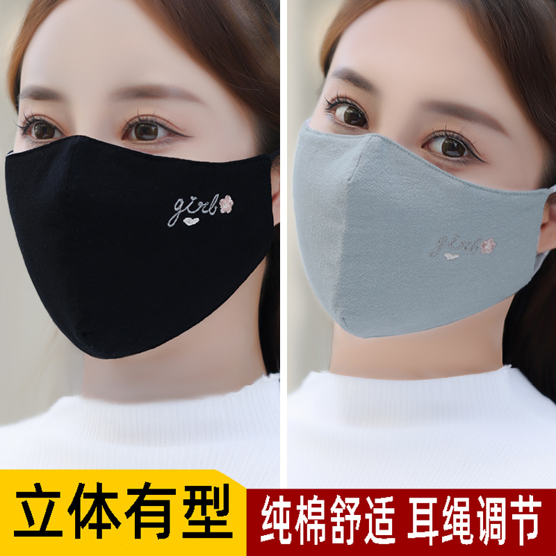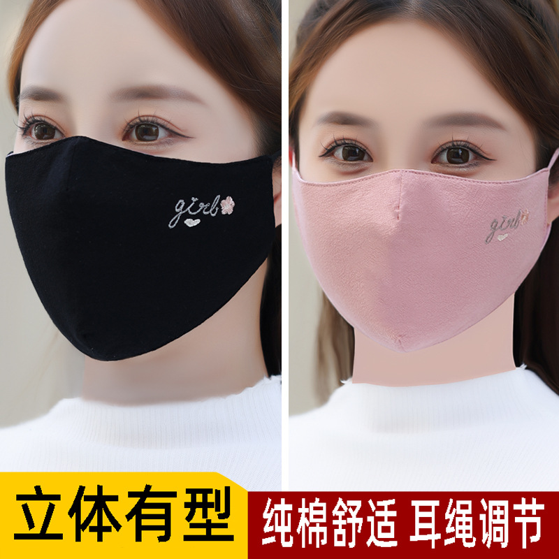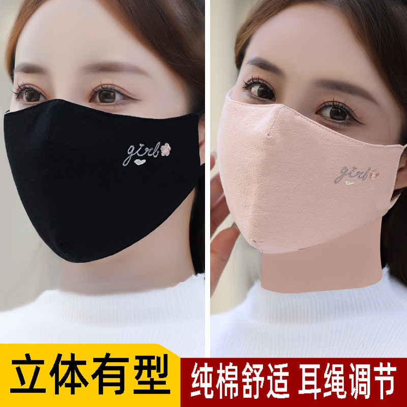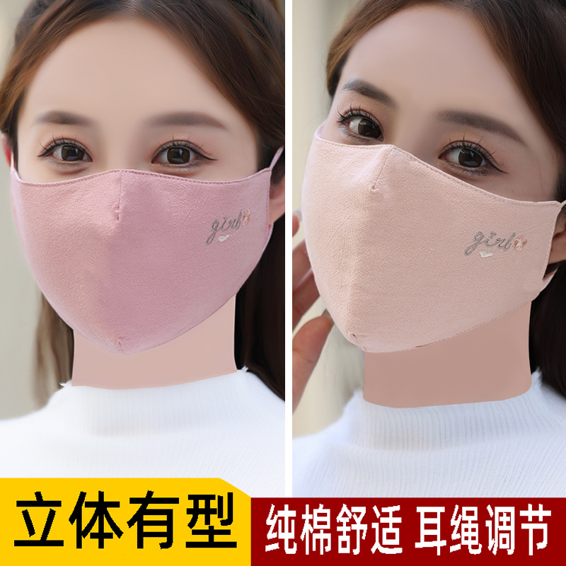 3 차원 순수한면 따뜻한 마스크 자수 가을과 겨울 여성 차가운 따뜻한 승마 패션 얼굴 마스크 Taobao 세대 헤어
