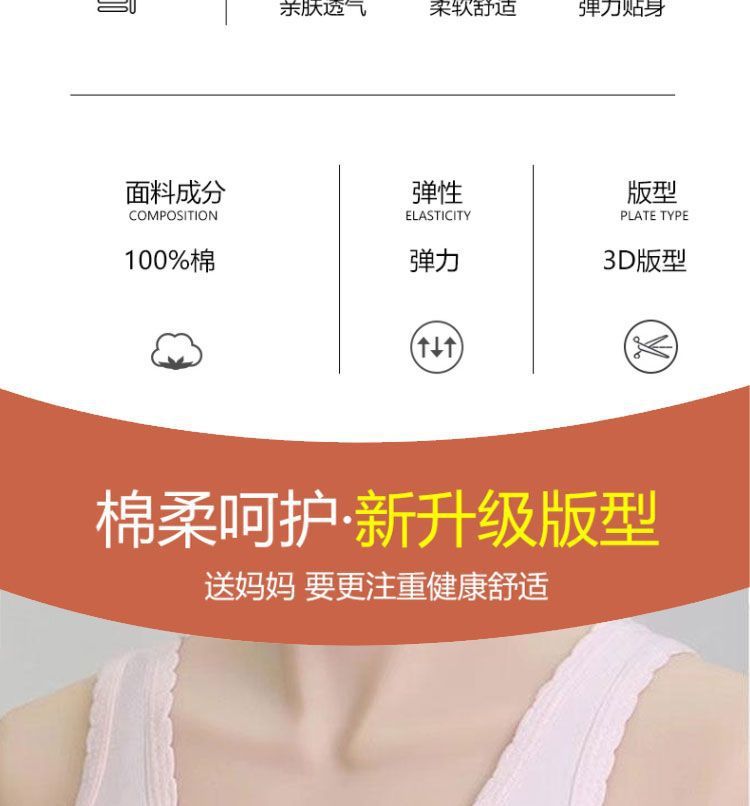 여름 얇은 중간 할머니 여성 속옷 조끼 여성 면화 없음 강철 반지가 노인을위한 브래지어 조끼스토어 가기