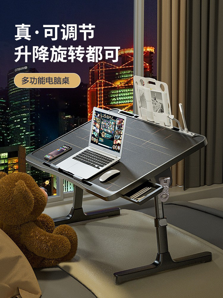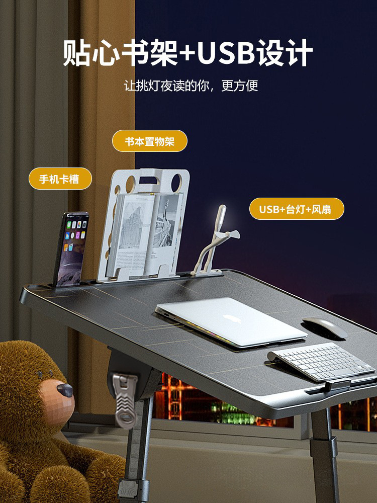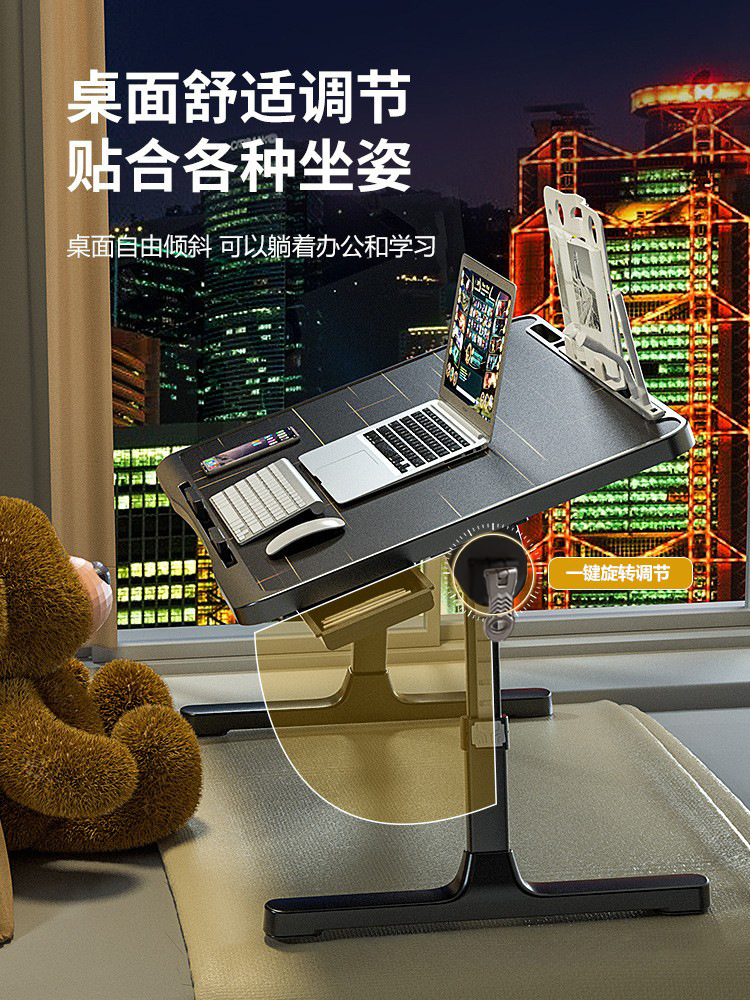 사출 성형 게으른 침대 책상 접이식 학습 테이블 노트북 테이블 리프팅 가능한 검은 색 작은 테이블 학생 테이블