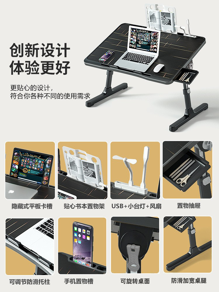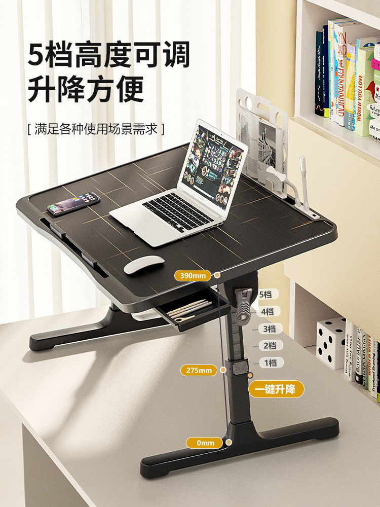 사출 성형 게으른 침대 책상 접이식 학습 테이블 노트북 테이블 리프팅 가능한 검은 색 작은 테이블 학생 테이블스토어 가기