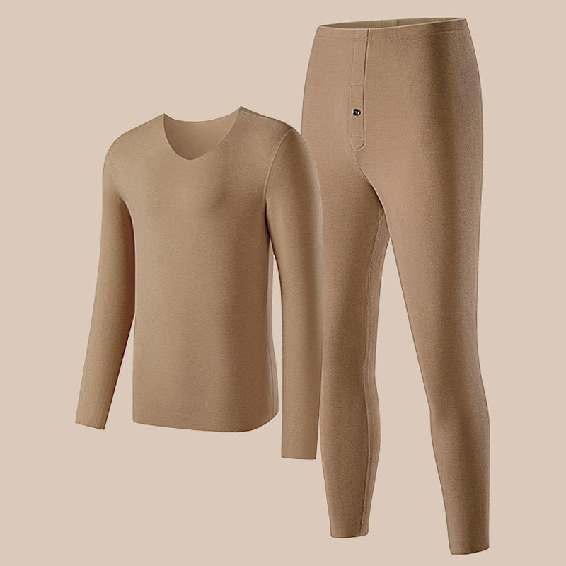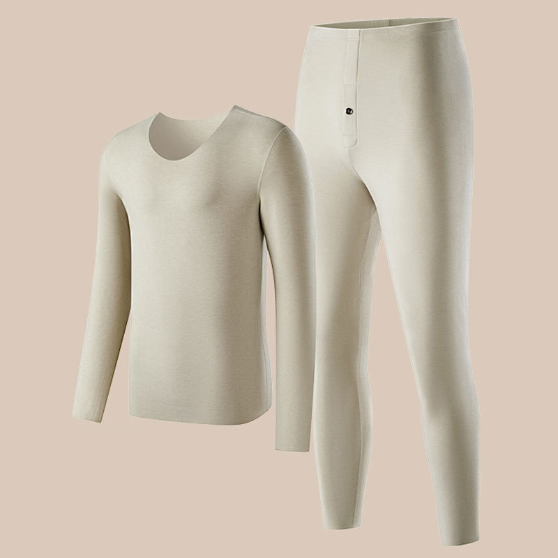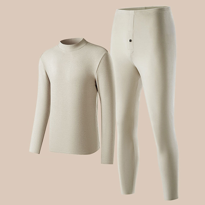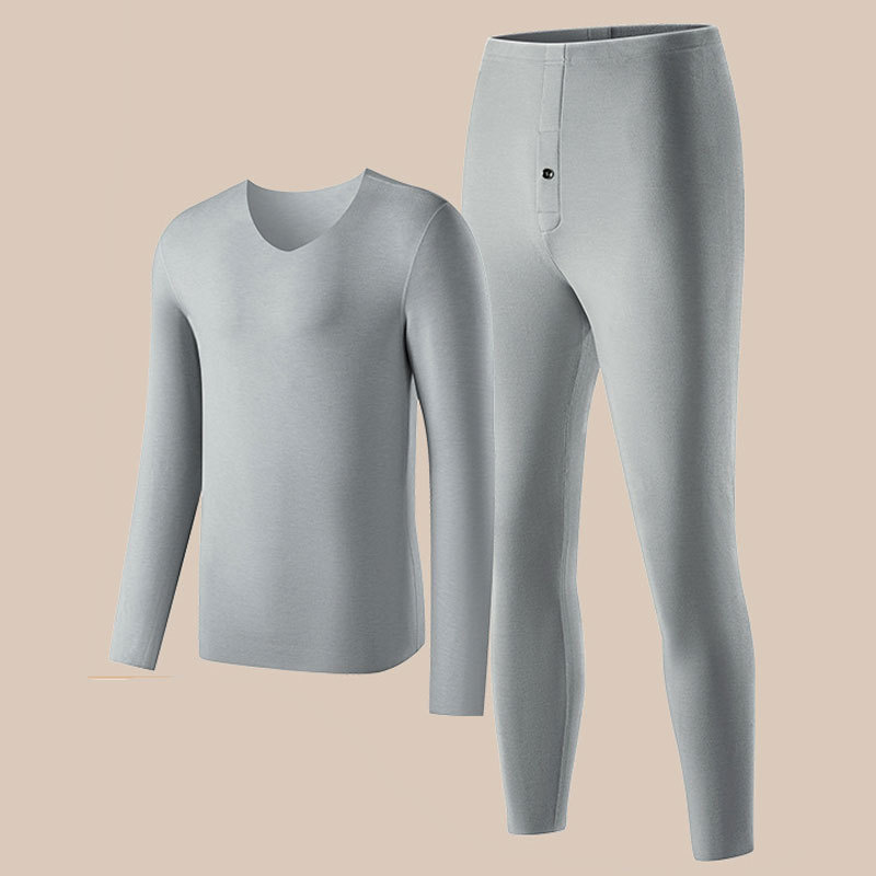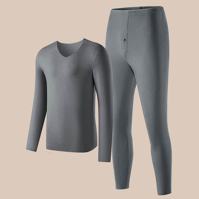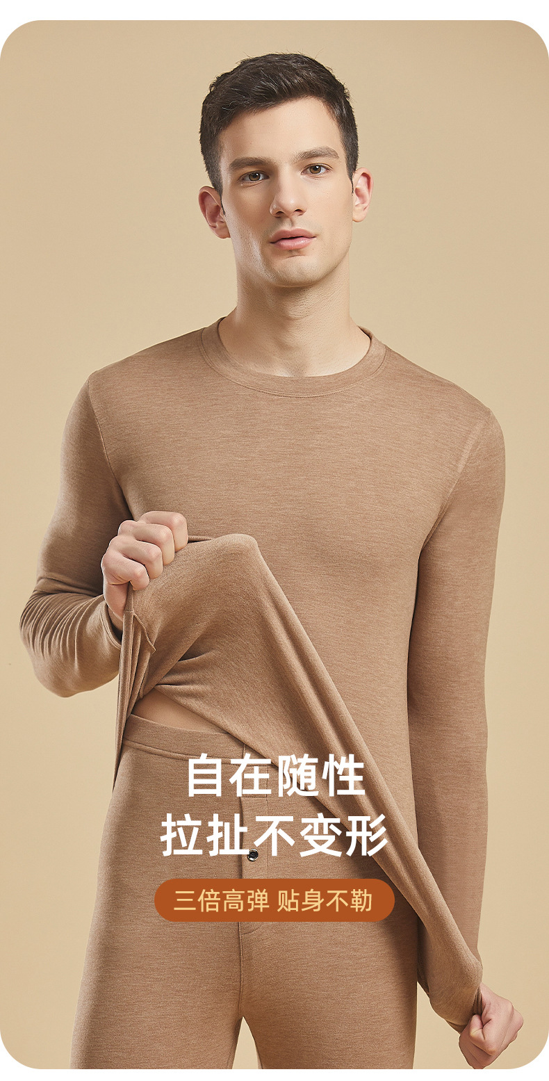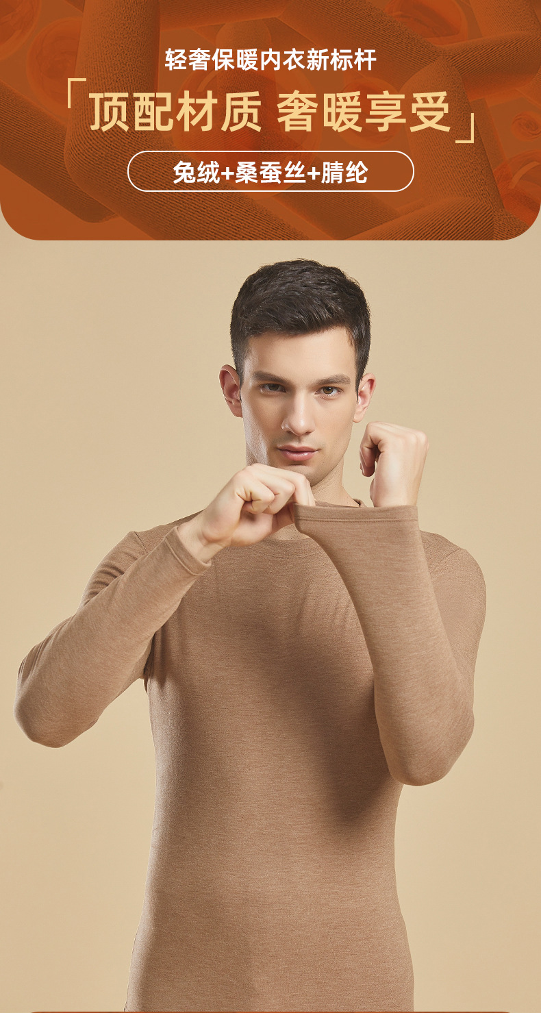 토끼 벨벳 실크 벨벳 보온 속옷, 발열, 슬림핏, 항균, 벨벳, 두꺼운 단색 가을 옷과 긴 바지 남성용 세트스토어 가기