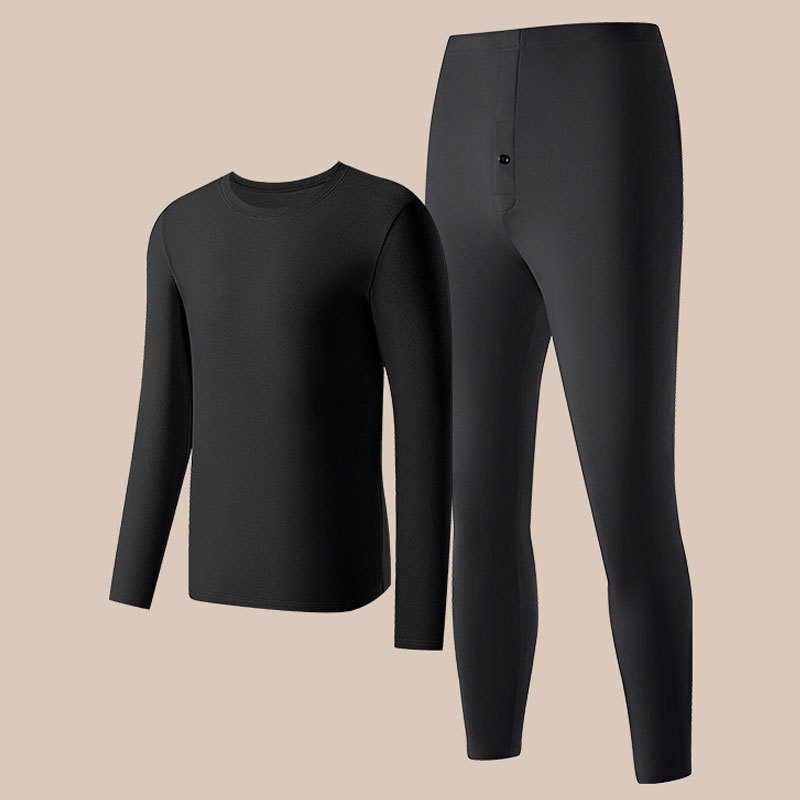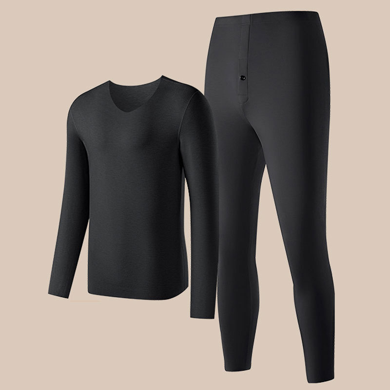 토끼 벨벳 실크 벨벳 보온 속옷, 발열, 슬림핏, 항균, 벨벳, 두꺼운 단색 가을 옷과 긴 바지 남성용 세트
