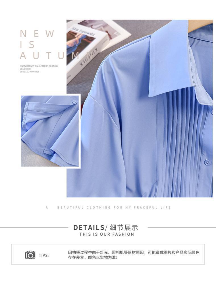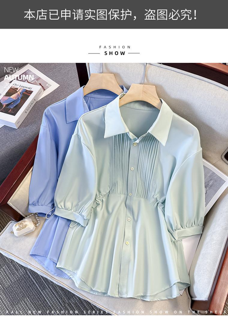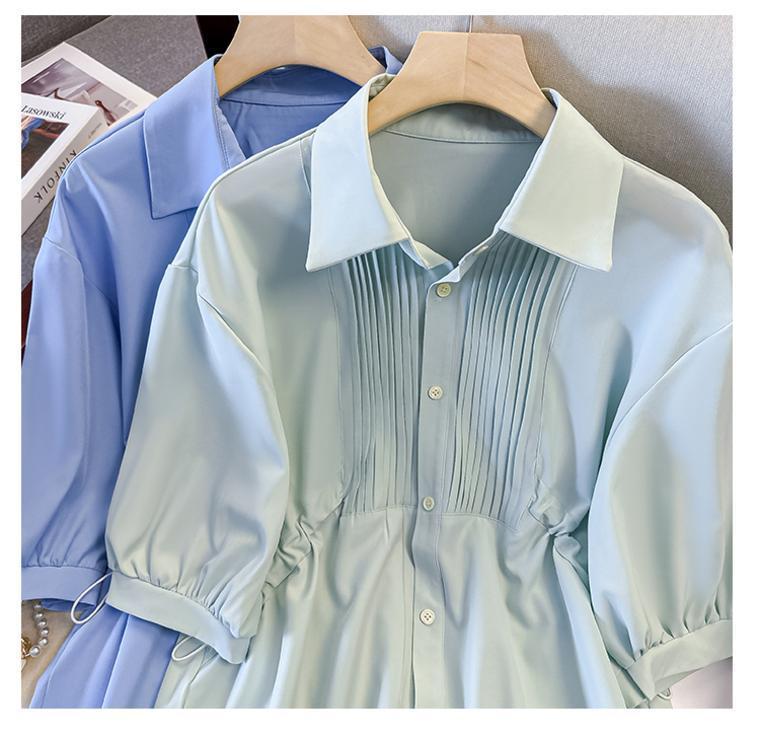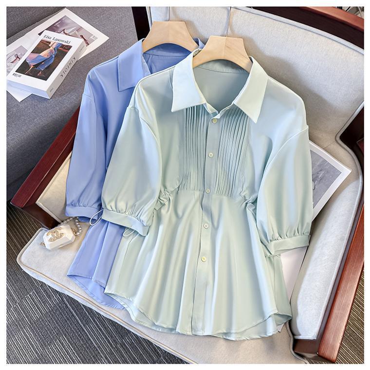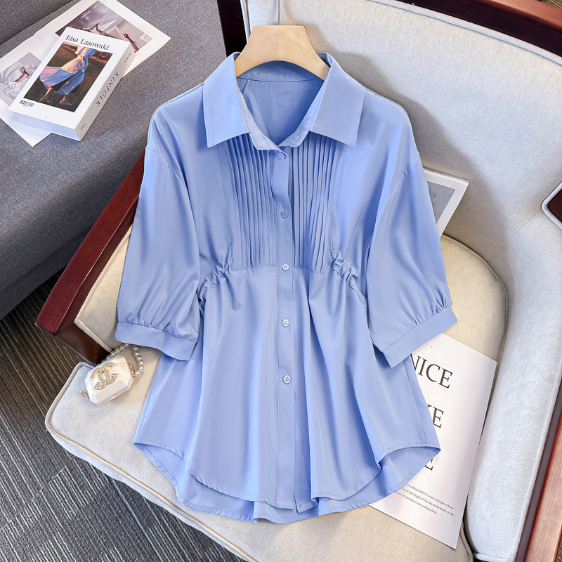 A6C 플러스 사이즈 여성의 여름 프랑스 스타일 허리 나이 감소 어깨 반팔 셔츠 통통한 자매 슬림 배꼽 숨기기스토어 가기