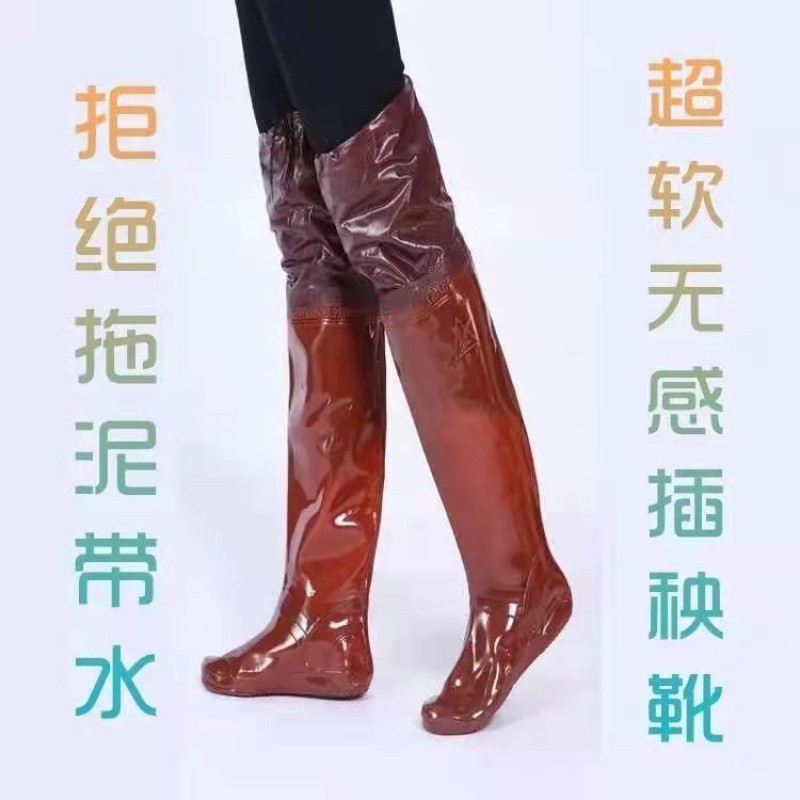 방수 논벼 심기 농지 부츠 워터 슈즈 여성용 부드러운 밑창 빗물 부츠 대형 여성용 농업용 롱 스프링 크로스스토어 가기