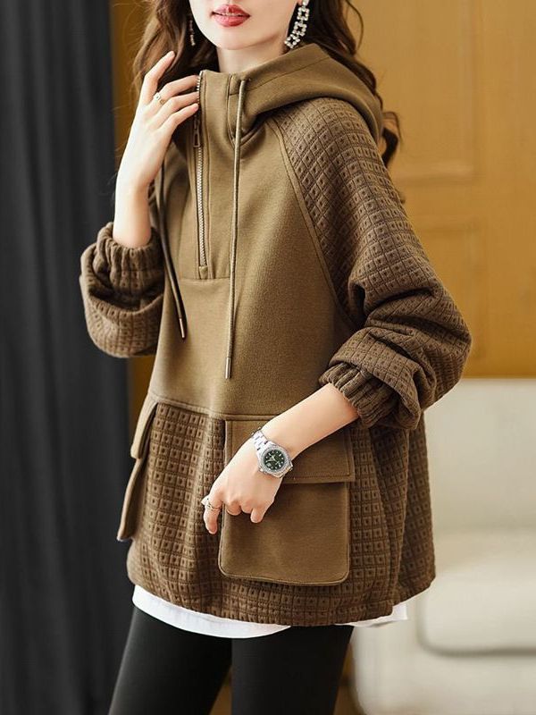 2023 가을 새로운 패션 한국 슬림 올 매치 기질 대비 컬러 스티칭 후드 지퍼 스웨터 여성 패션스토어 가기