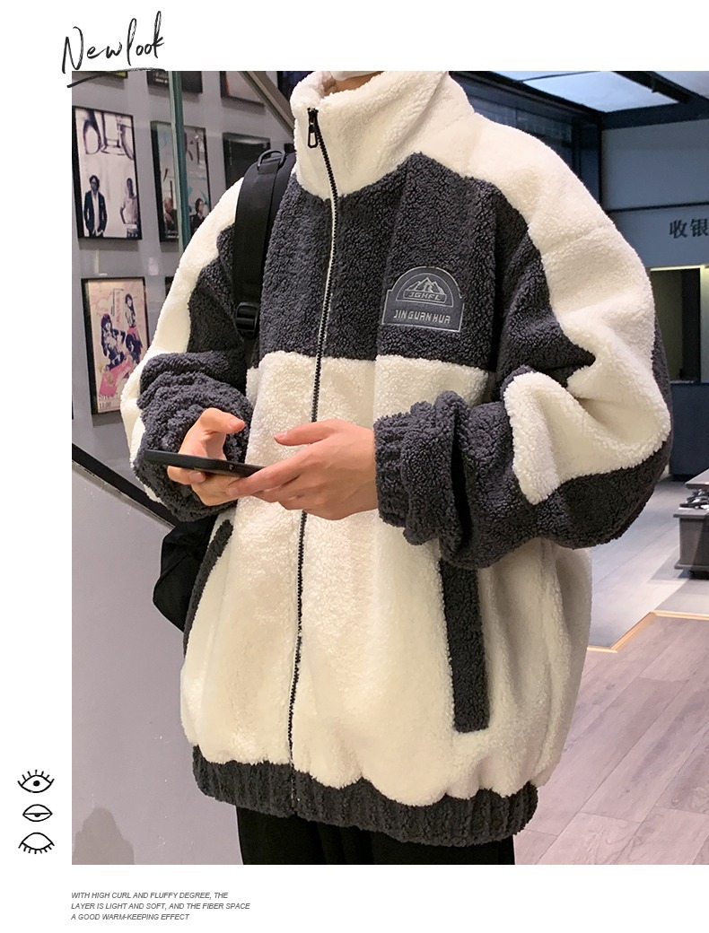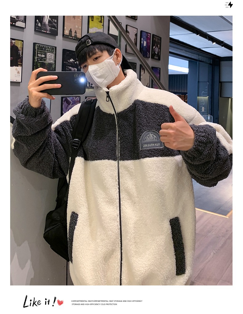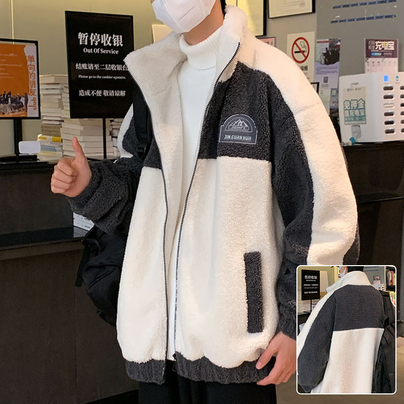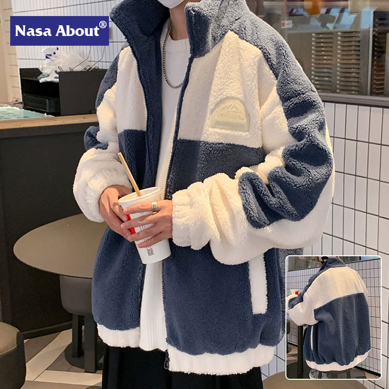 NASA 코트 남성 가을 겨울 한국식 벨벳 두꺼운 셰르파 면 코트 겨울 방한 및 따뜻한 겨울 면 코트스토어 가기