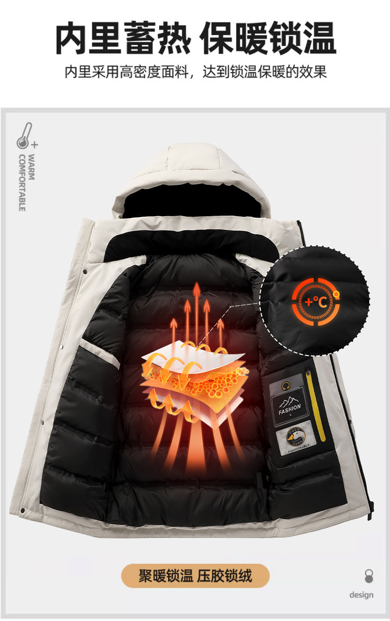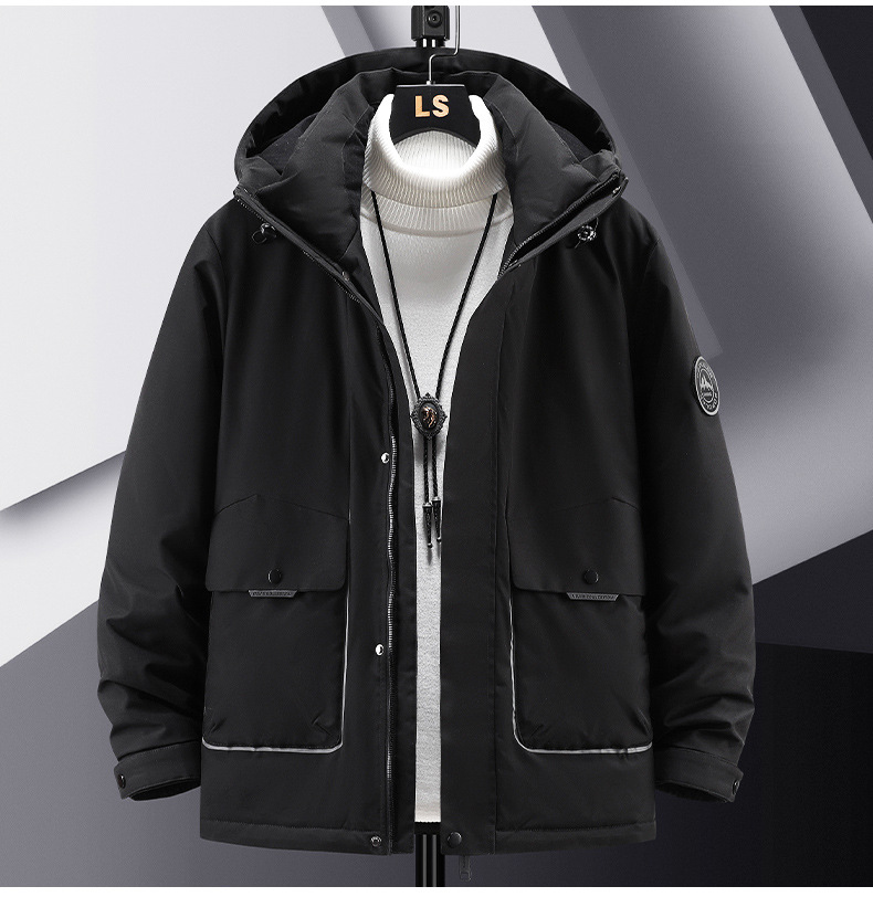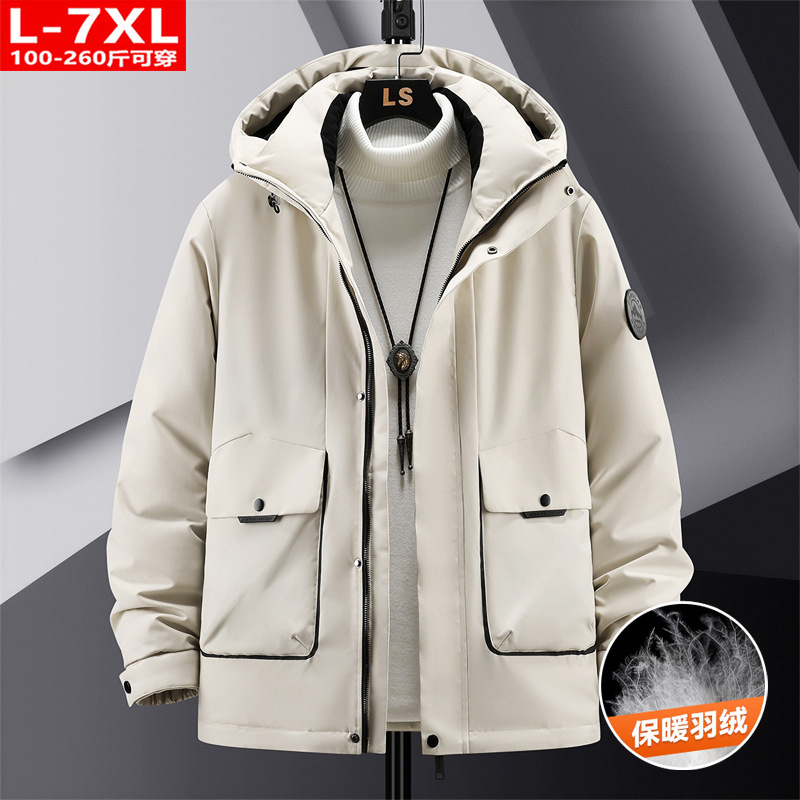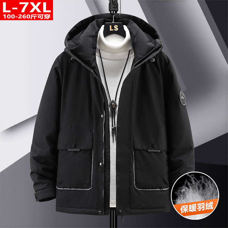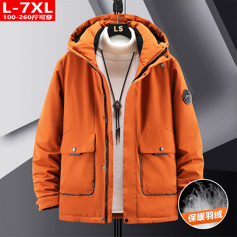 겨울 트렌디한 고품질 남성 의류, 팻 사이즈를 위한 멋스럽고 다재다능한 후드 다운 재킷, 플러스 사이즈, 루즈한 방한 따뜻한 재킷스토어 가기