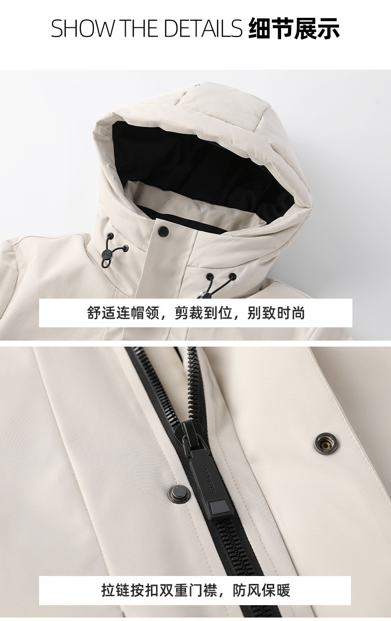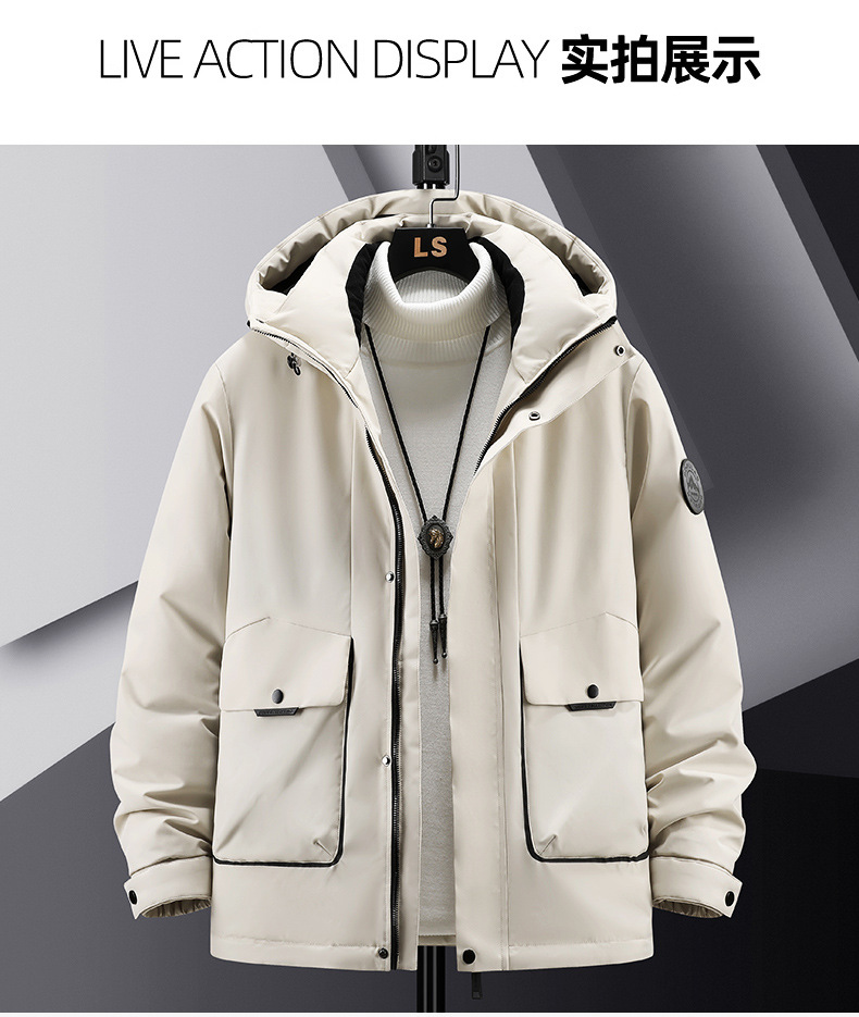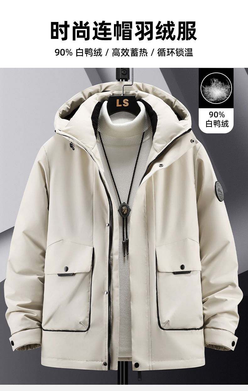 겨울 트렌디한 고품질 남성 의류, 팻 사이즈를 위한 멋스럽고 다재다능한 후드 다운 재킷, 플러스 사이즈, 루즈한 방한 따뜻한 재킷스토어 가기