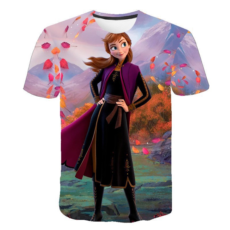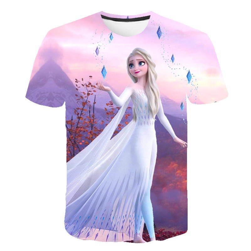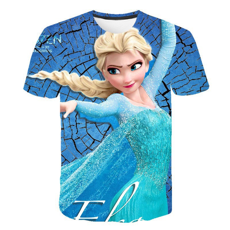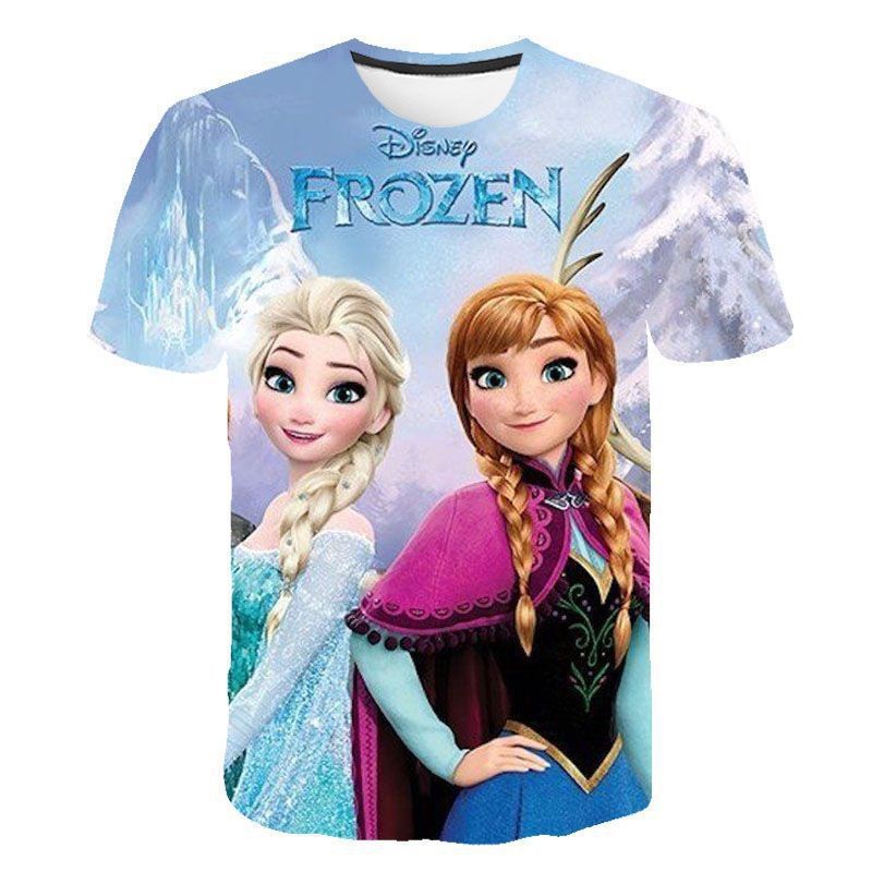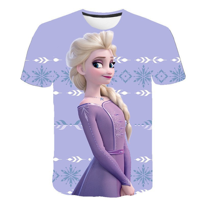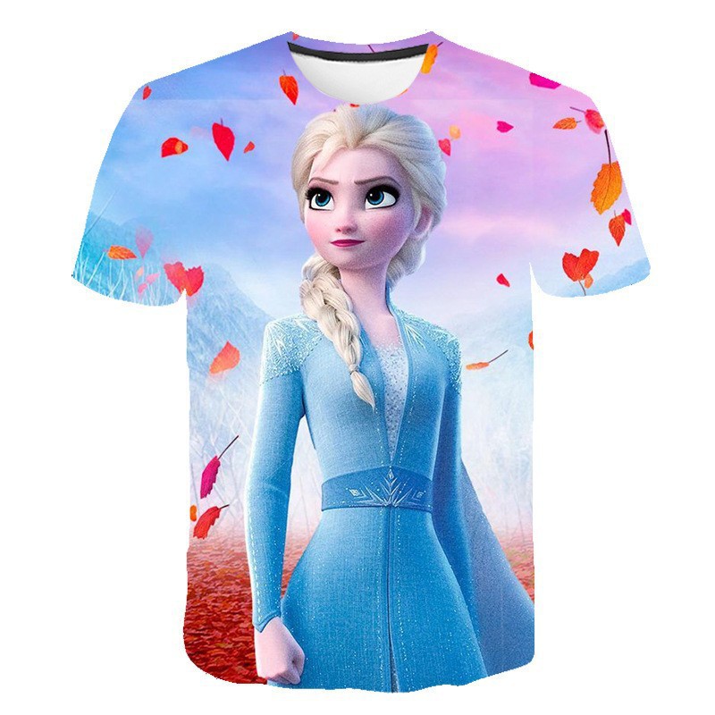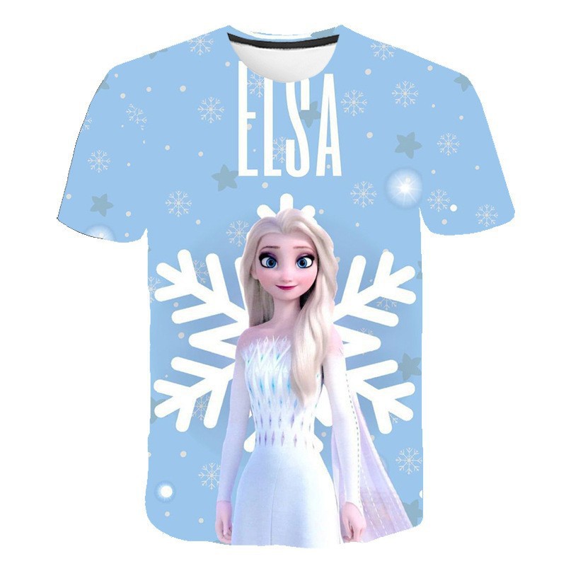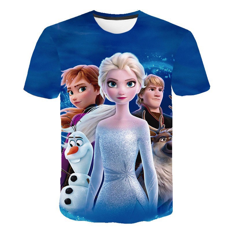跨境新款外贸休闲3D冰雪奇缘Frozen 2系列卡通儿童短袖T恤女童스토어 가기