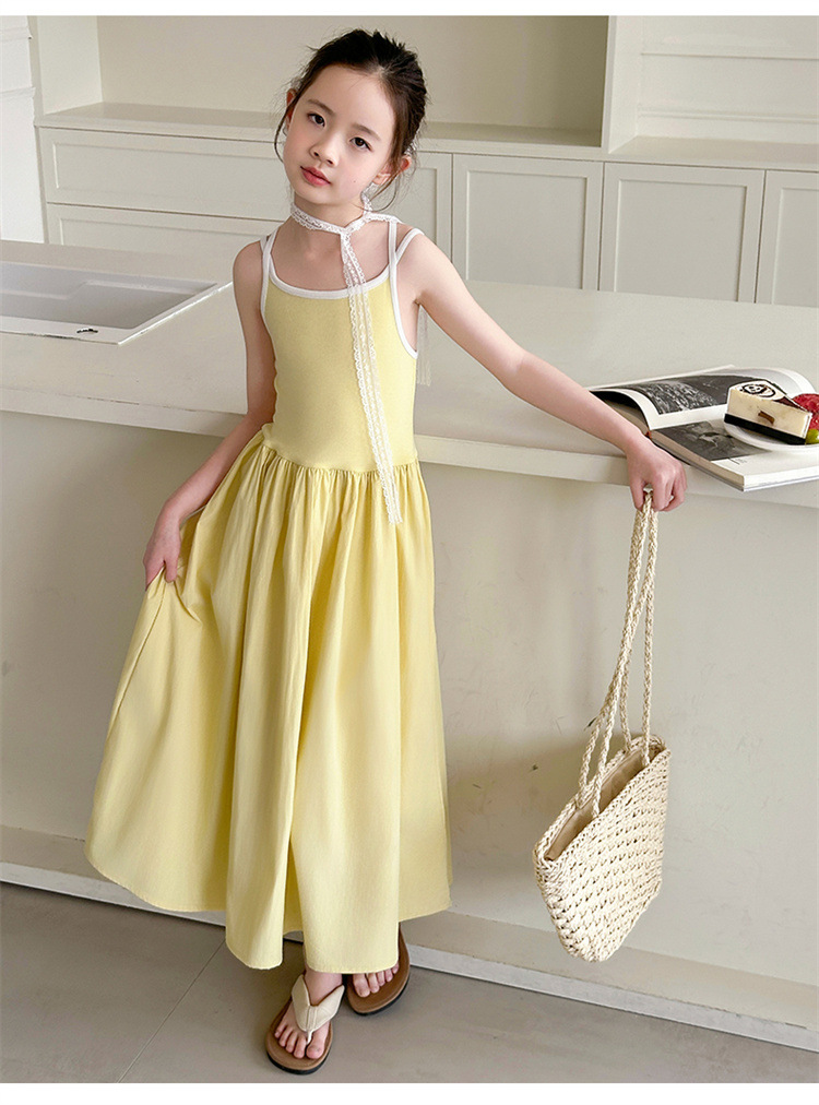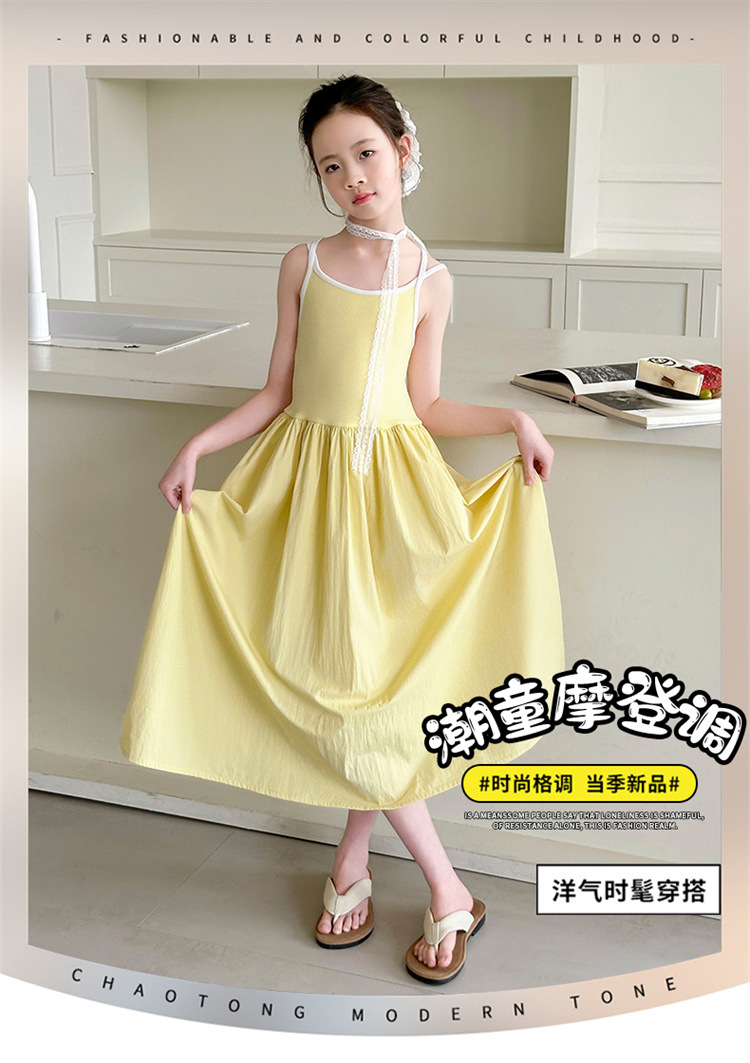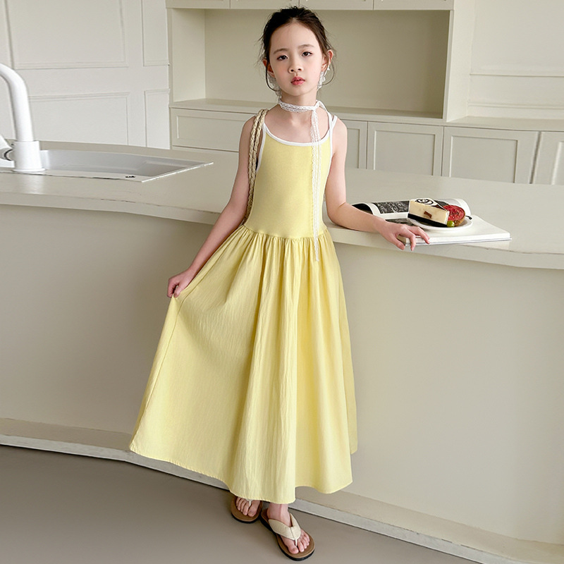 여자 헵번 스타일 스커트 여름 2025 새로운 스타일 소녀의 여름 서양 스타일 유행 조끼 스커트 여름 긴 치마스토어 가기