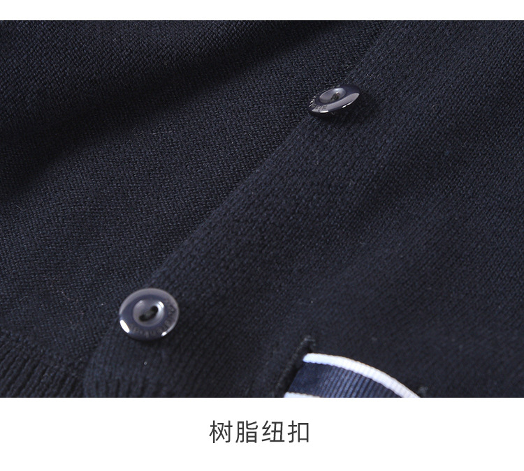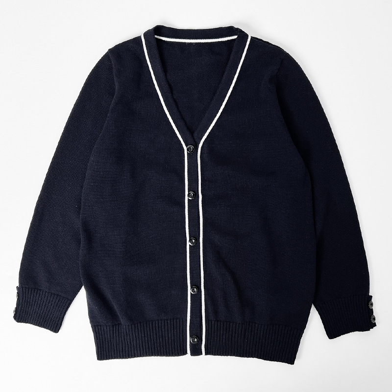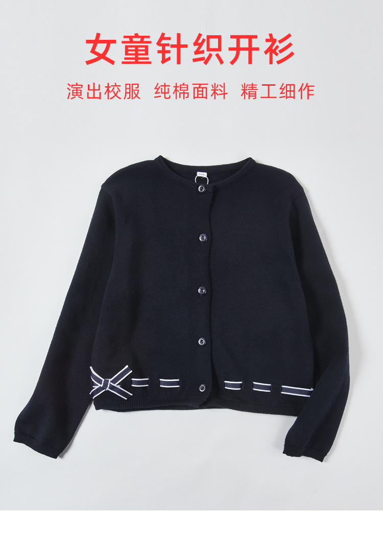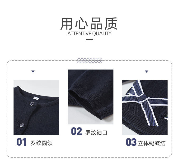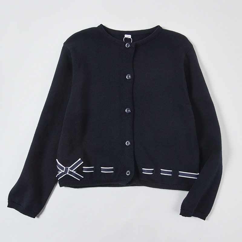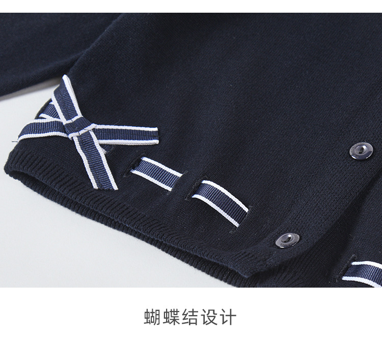 남학생과 여학생을 위한 네이비 블루 보우 학생복 스웨터 대학 아동복 스웨터 얇은 코트 모직 가디건