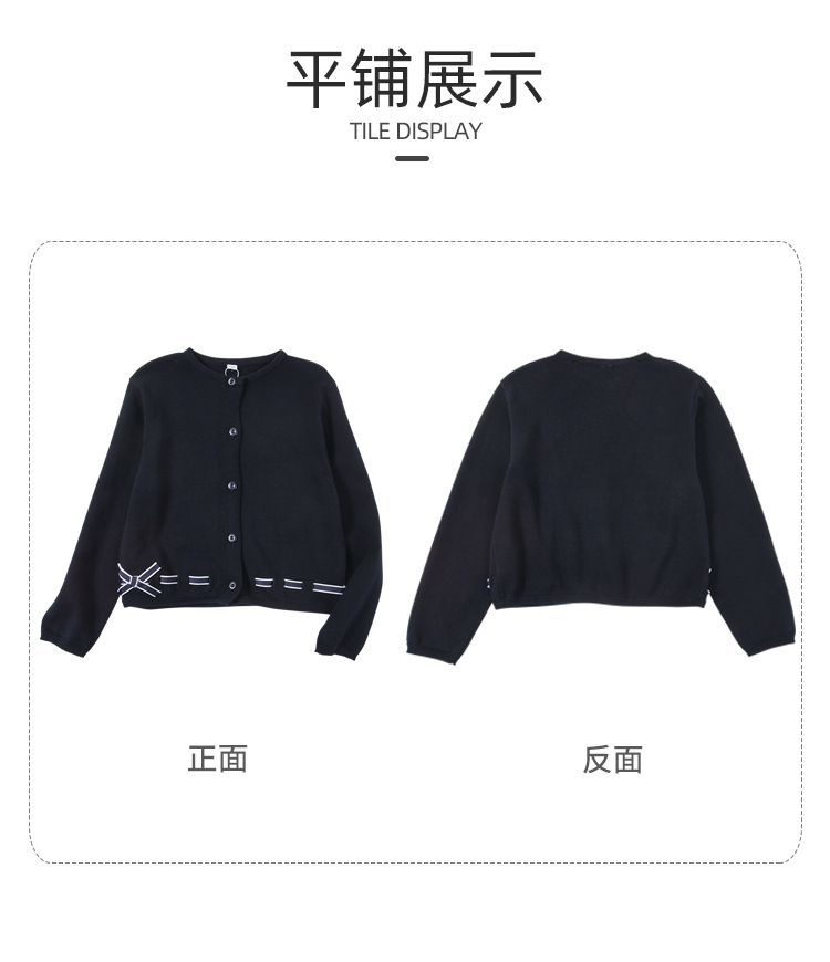 남학생과 여학생을 위한 네이비 블루 보우 학생복 스웨터 대학 아동복 스웨터 얇은 코트 모직 가디건스토어 가기