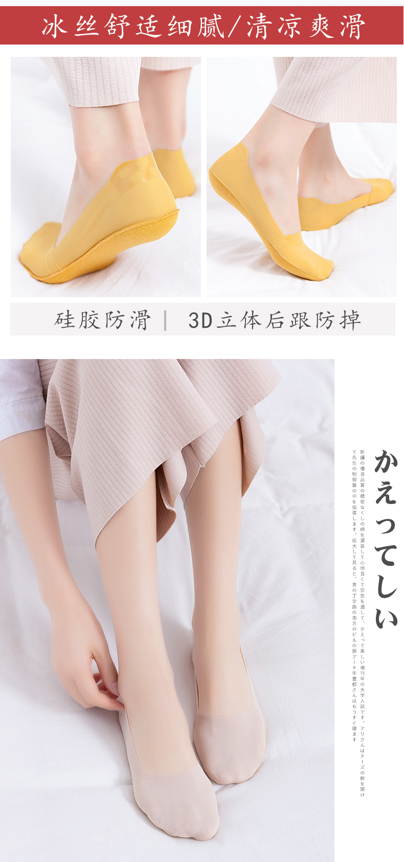 여름 여성용 보트 양말 얇은 얼음 실크 얕은 입 보이지 않는 실리콘 미끄럼 방지 여름 순수 코튼 바닥 양말 여성용 짧은 양말스토어 가기