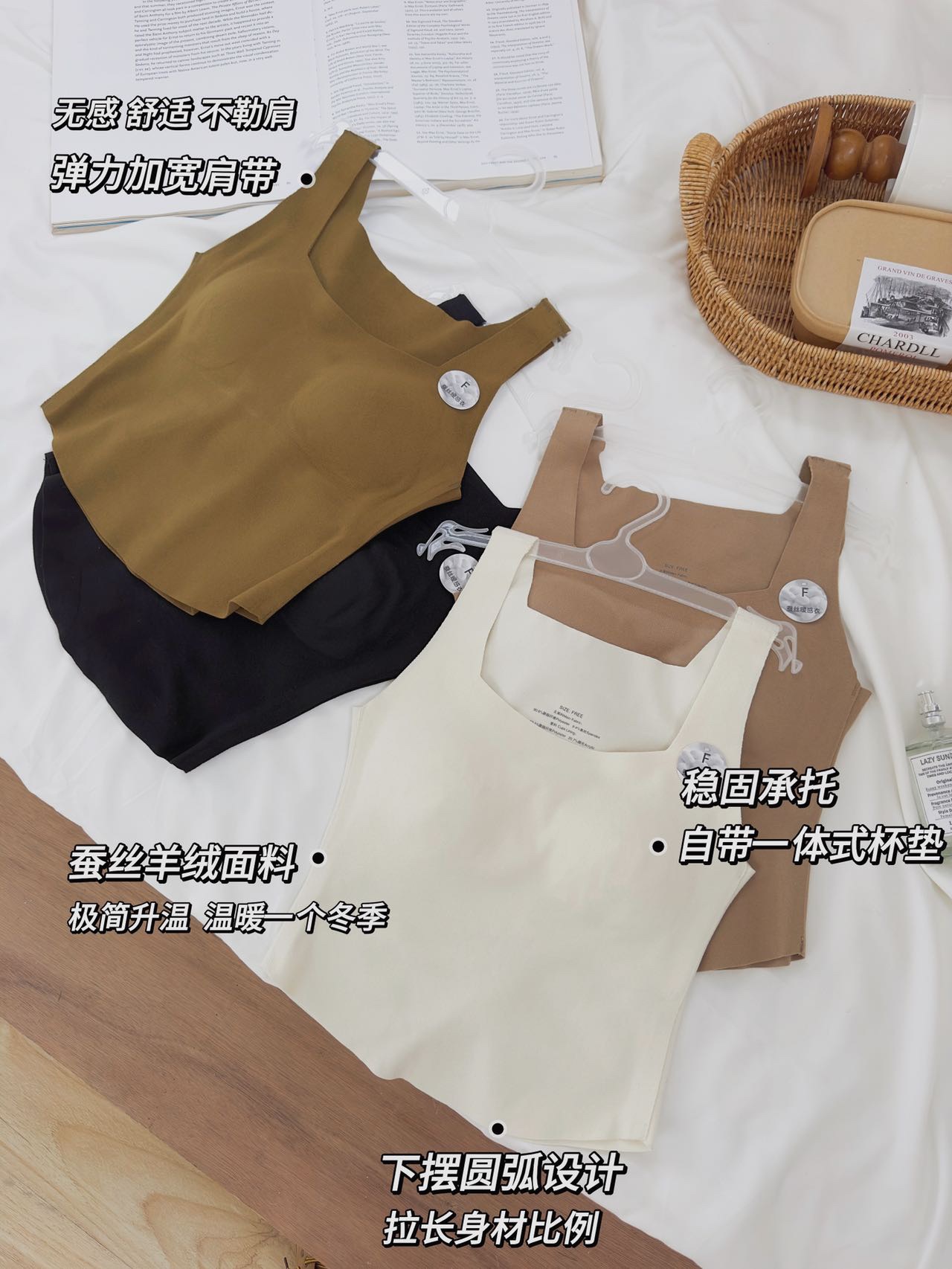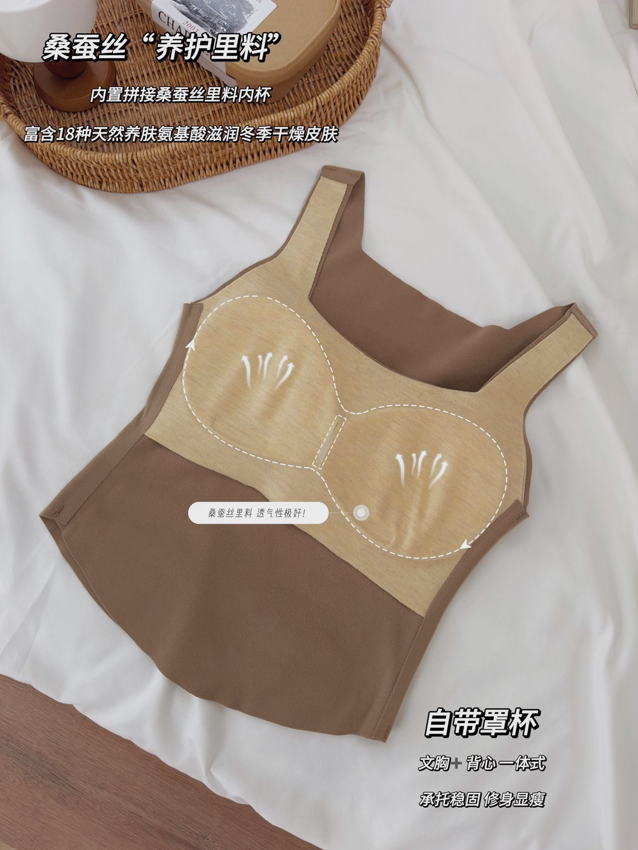 가을과 겨울 캐시미어 실크 따뜻한 조끼 고정 컵과 가슴 패드 자발적인베이스 넓은 어깨 스트랩 내부 슬링
