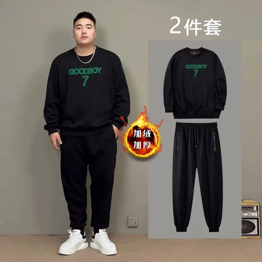 남성용 가을 겨울 풀오버 스웨트 셔츠 정장, 트렌디한 루즈 캐주얼 스포츠 투피스 세트, 벨벳 두꺼운 대형 남성 세트스토어 가기