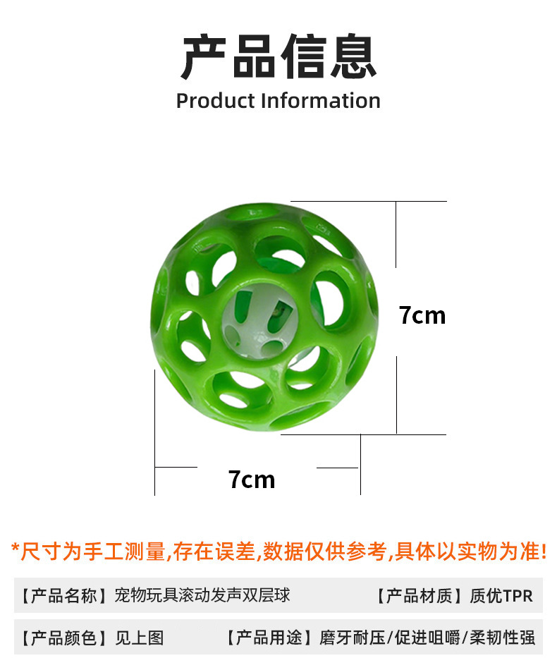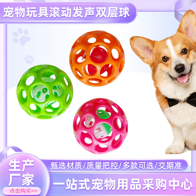 반려동물 장난감 롤링 사운드 더블 레이어 볼 더블 레이어 개 자체 자극 치아 청소 및 치아 연삭 애완 동물 장난감 공스토어 가기