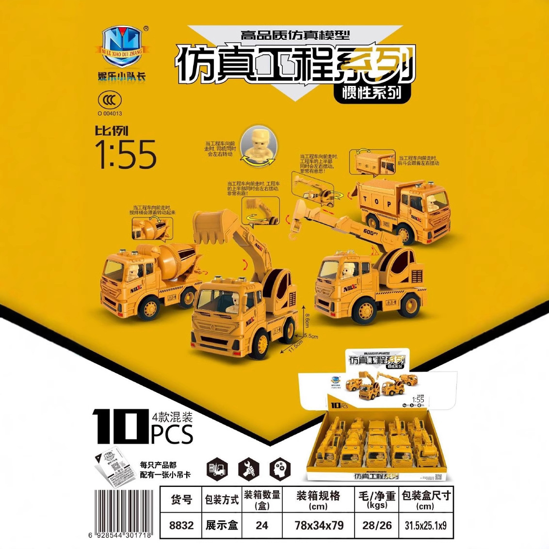 Nile Captain 8832 어린이 장난감 10팩 혼합 및 일체형 엔지니어링 차량 어린이 관성 시뮬레이션 엔지니어링 차량 시리즈