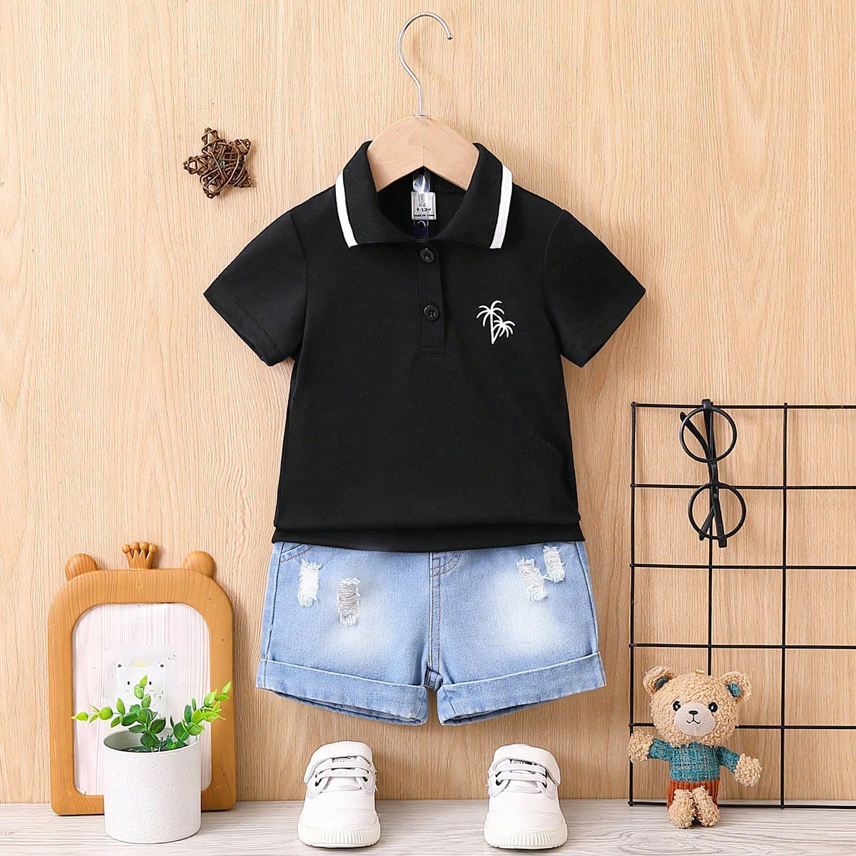 여름 반팔 반바지 상쾌한 단색 아기 소년 여름 아동복 국경 클래스 A 여름 아기 옷 어린이 반팔스토어 가기