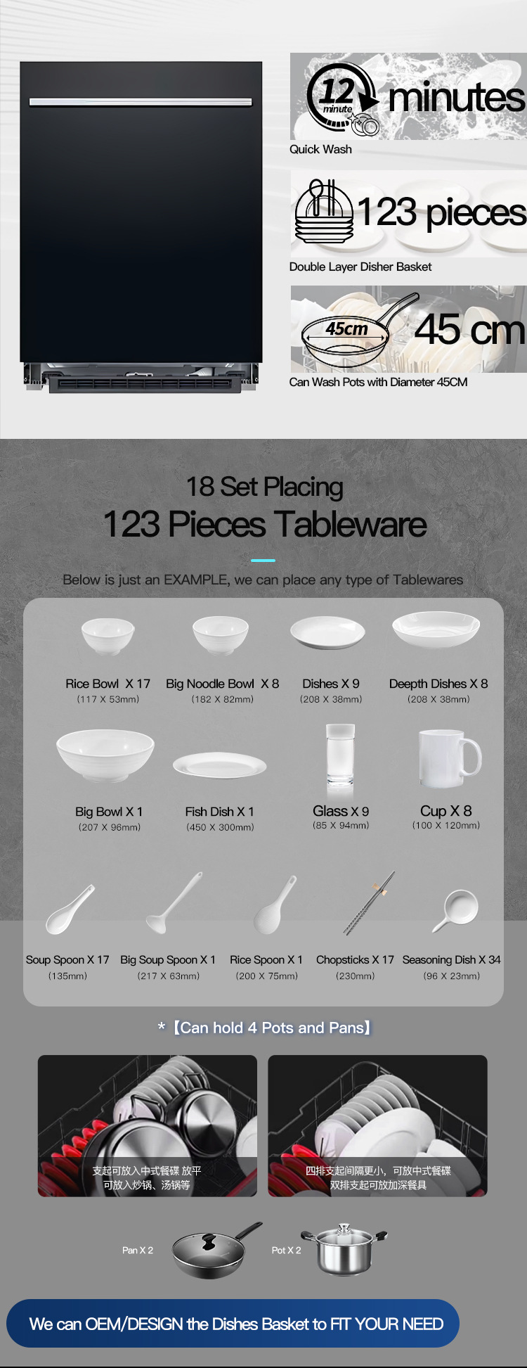 18 세트 완전 자동 다기능 내장 지능형 편리한 주방 식기 세척기 220V 가정용 대용량 식기 세척기