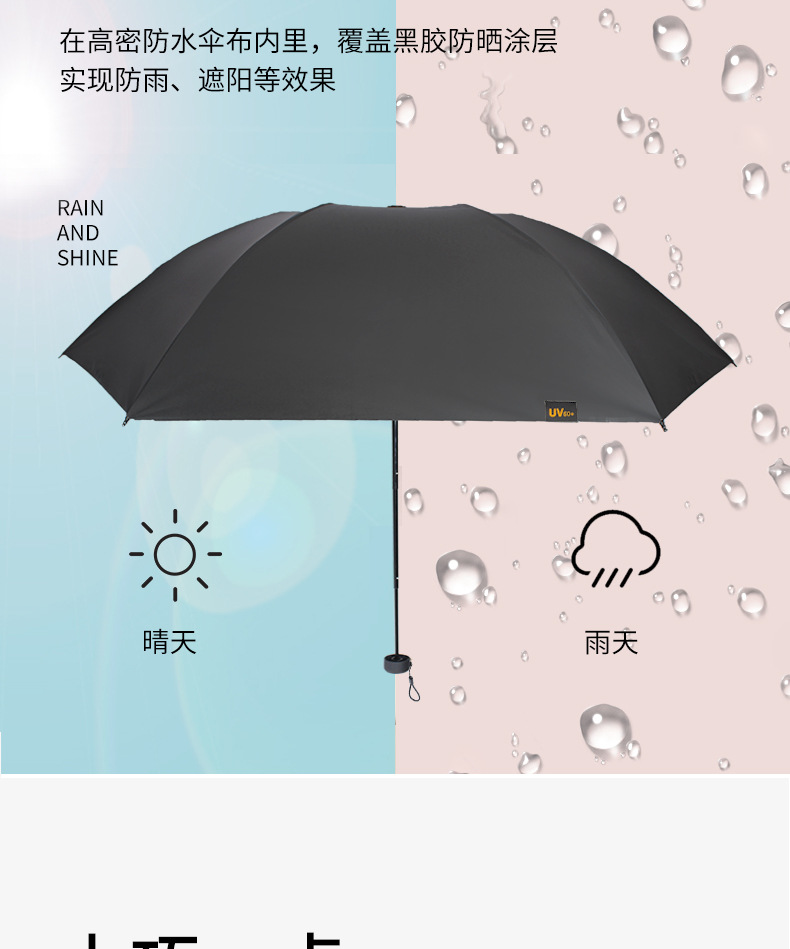 Hongda 태양 보호 우산 70% off 단색 태양 우산 비닐 태양 보호 UV 보호 남성과 여성의 비 또는 빛 태양 우산 경량스토어 가기