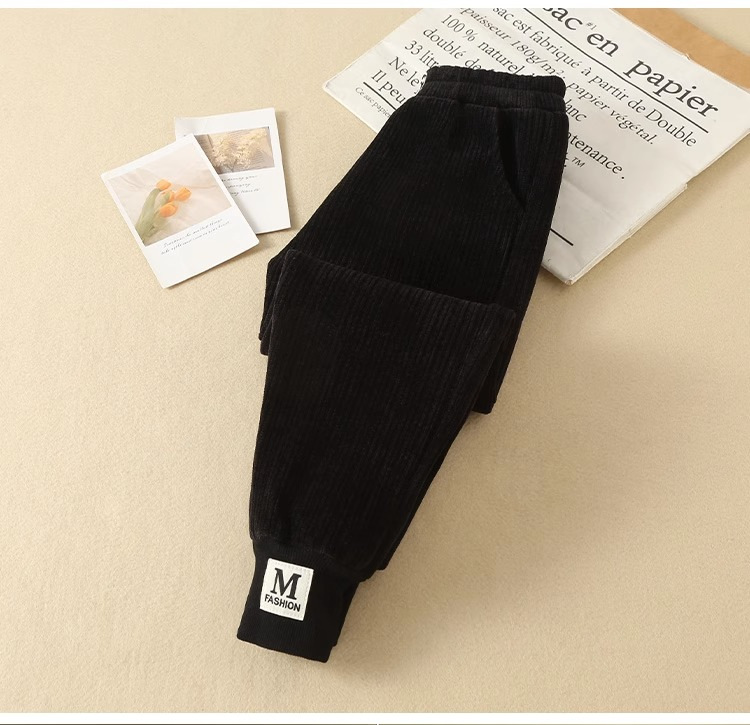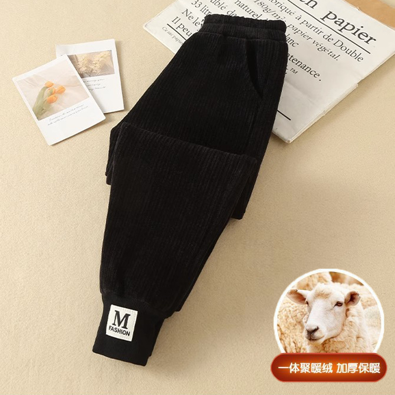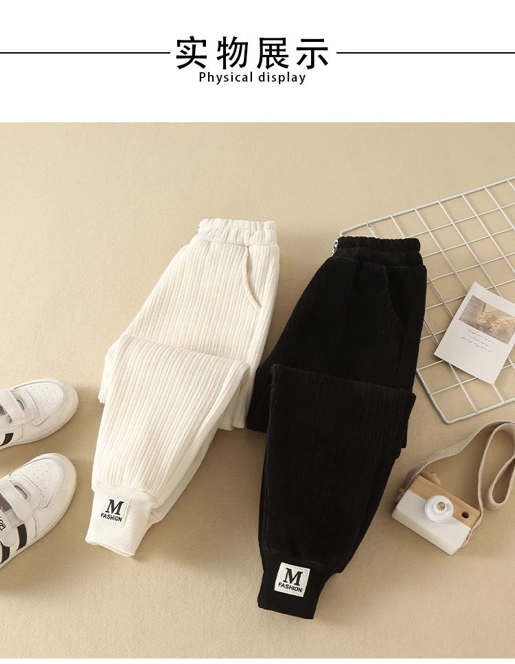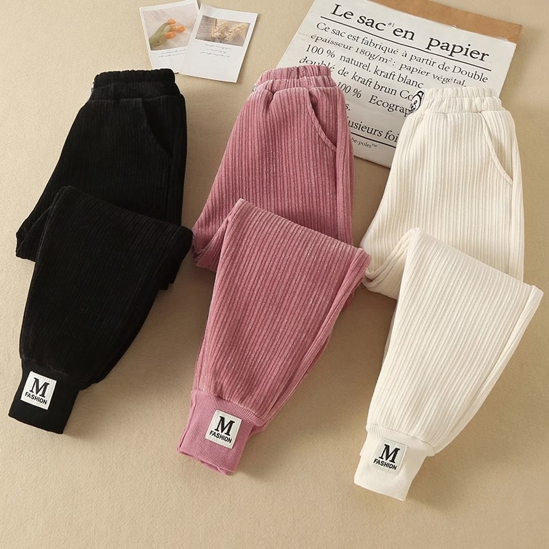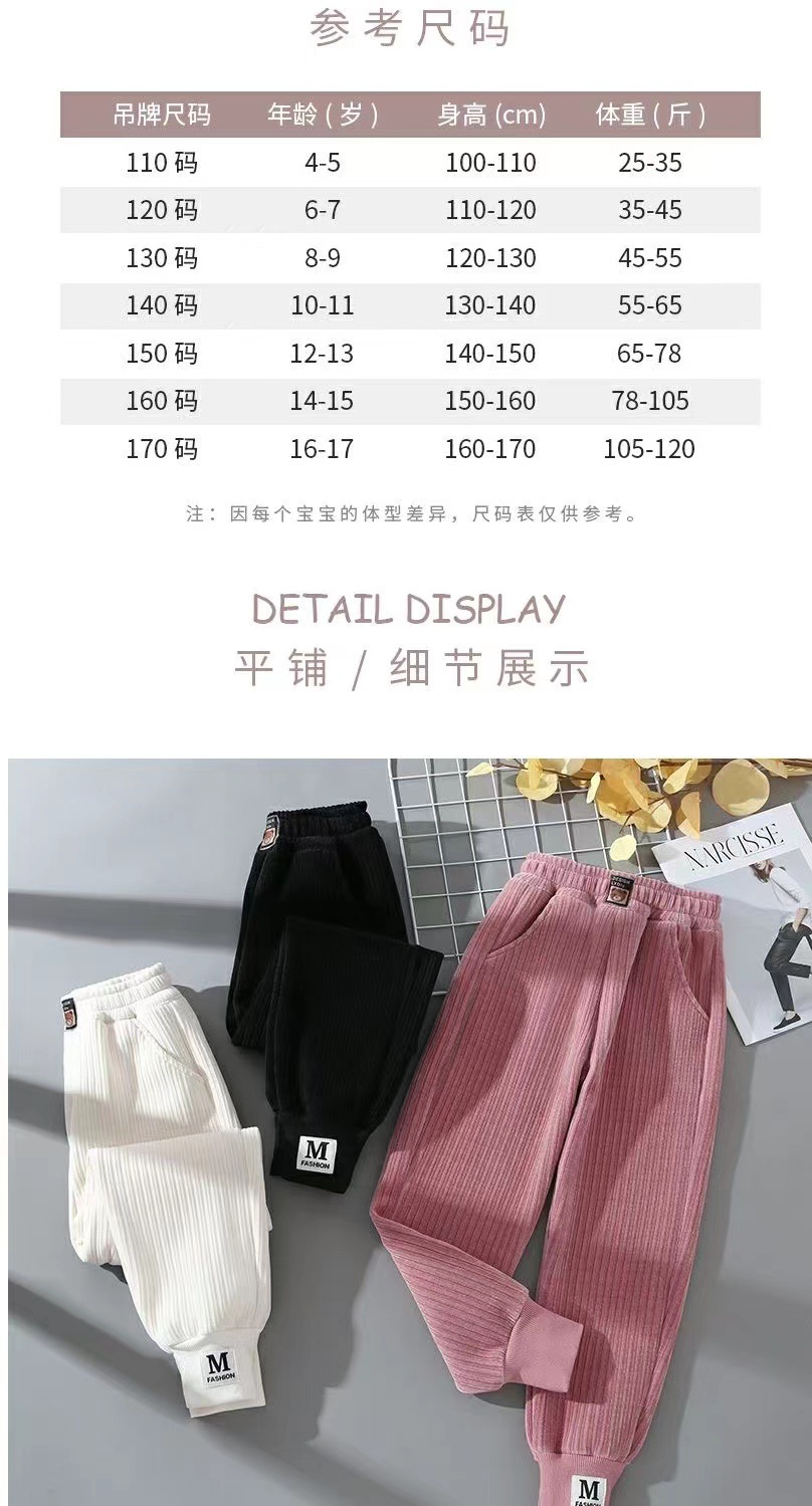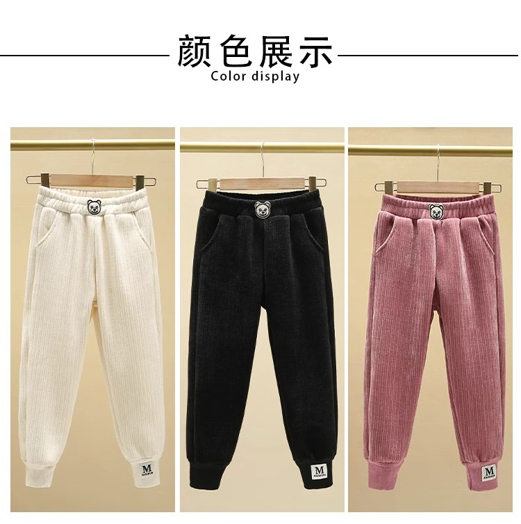 서양식 기모 스포츠 바지 소녀 2023 새로운 어린이 바지 가을과 겨울 중 큰 어린이 발 바지 캐주얼 트렌디 바지스토어 가기