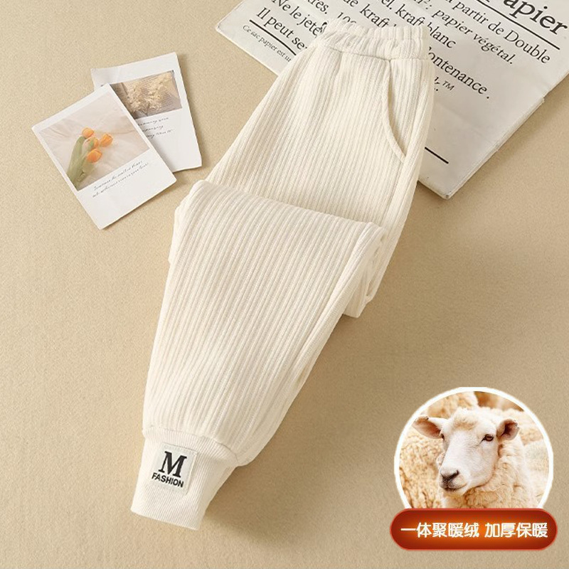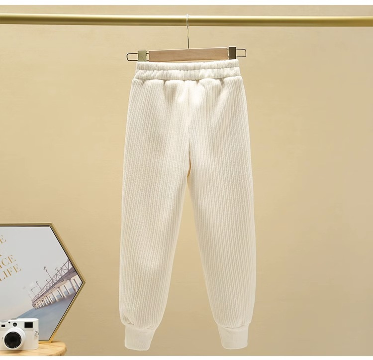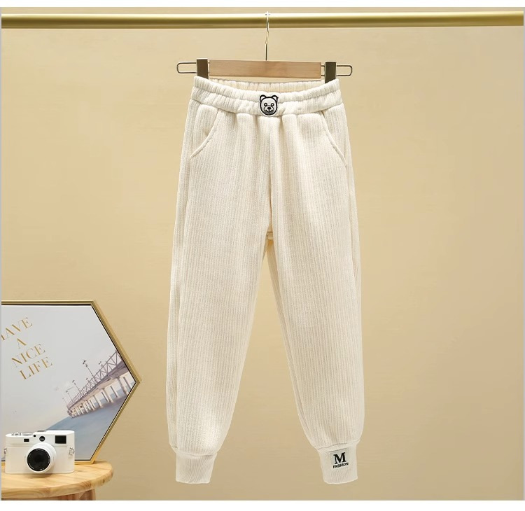 서양식 기모 스포츠 바지 소녀 2023 새로운 어린이 바지 가을과 겨울 중 큰 어린이 발 바지 캐주얼 트렌디 바지
