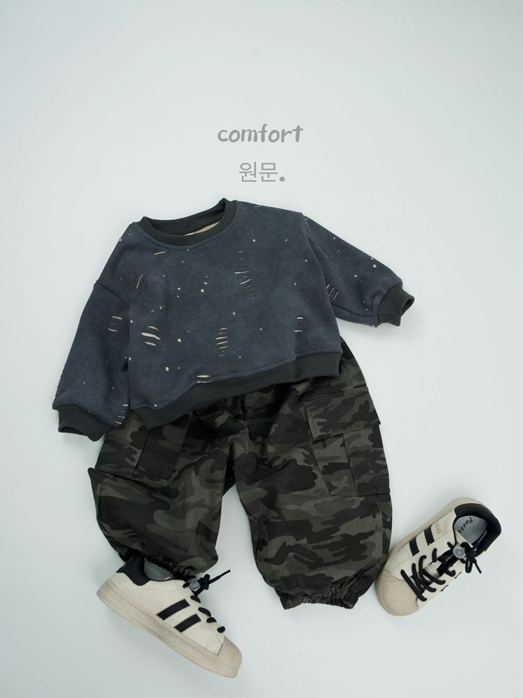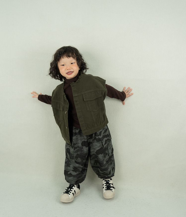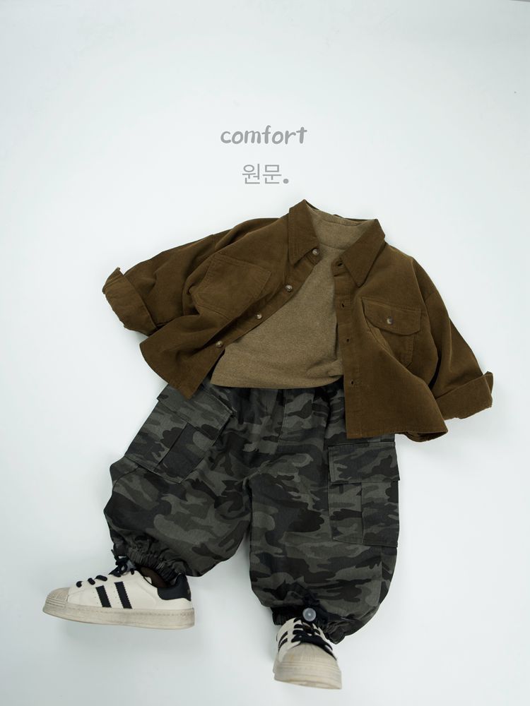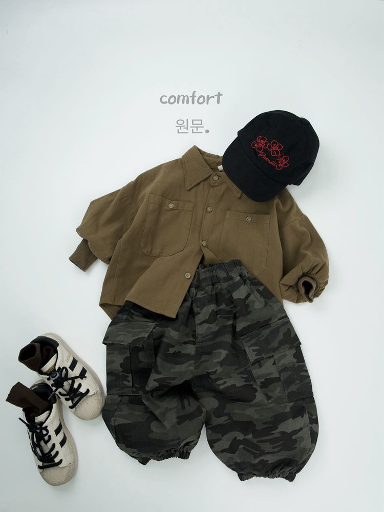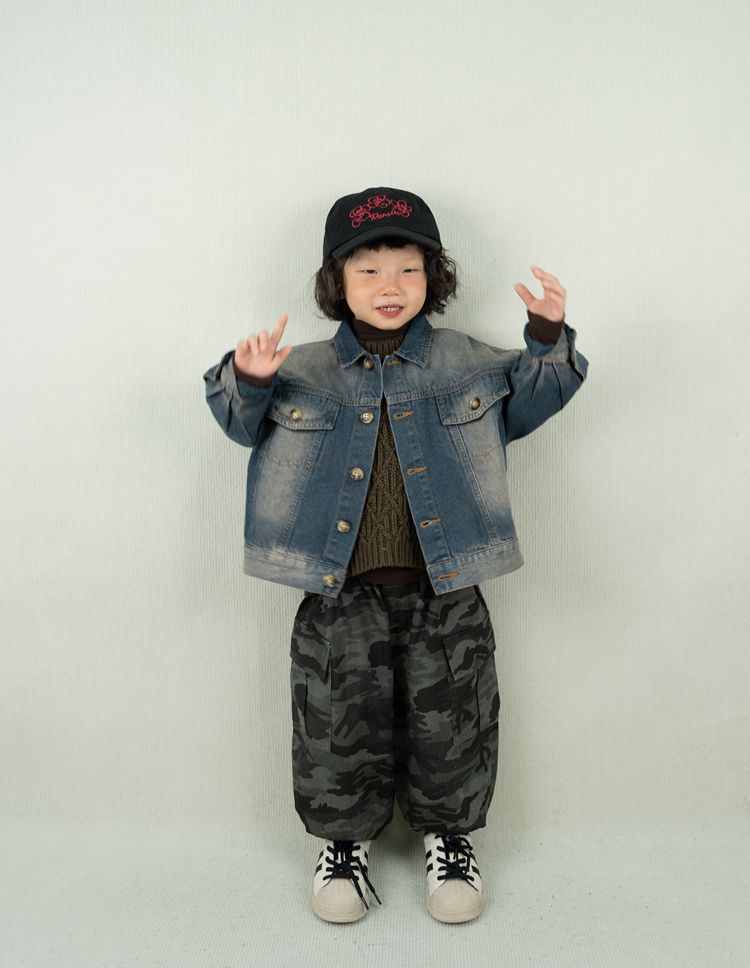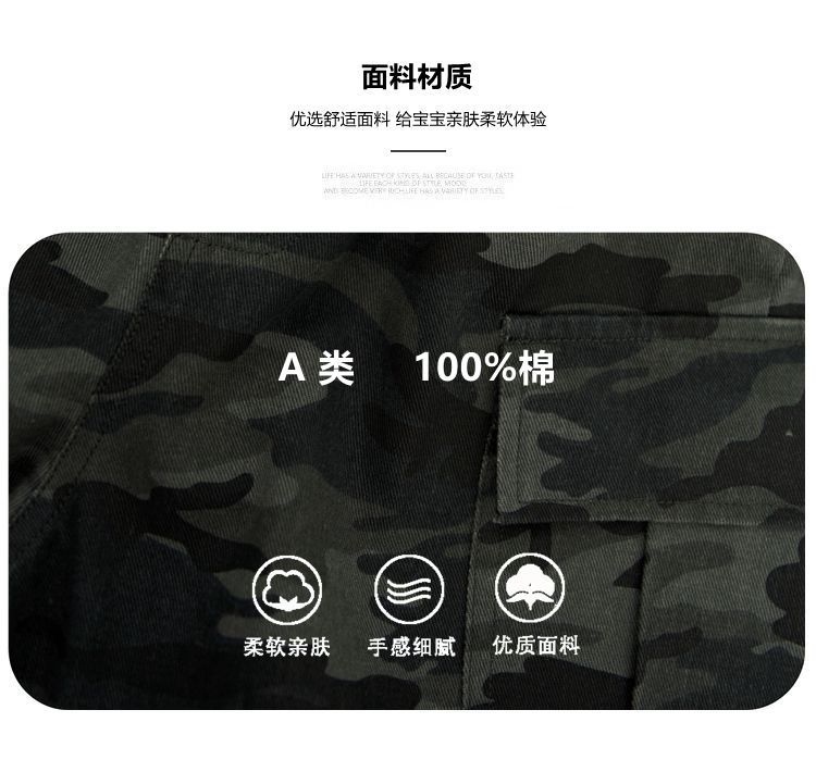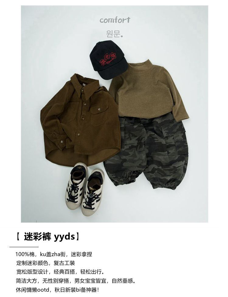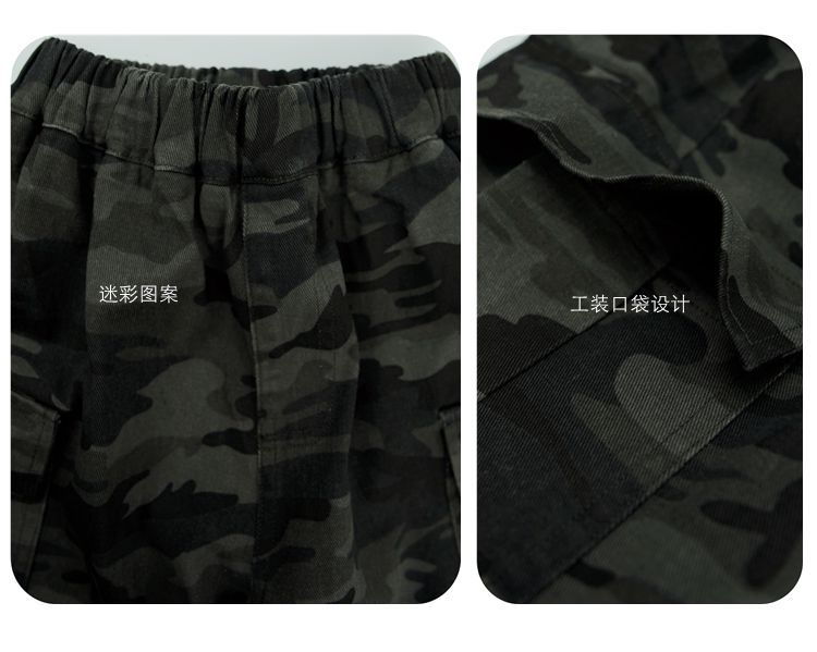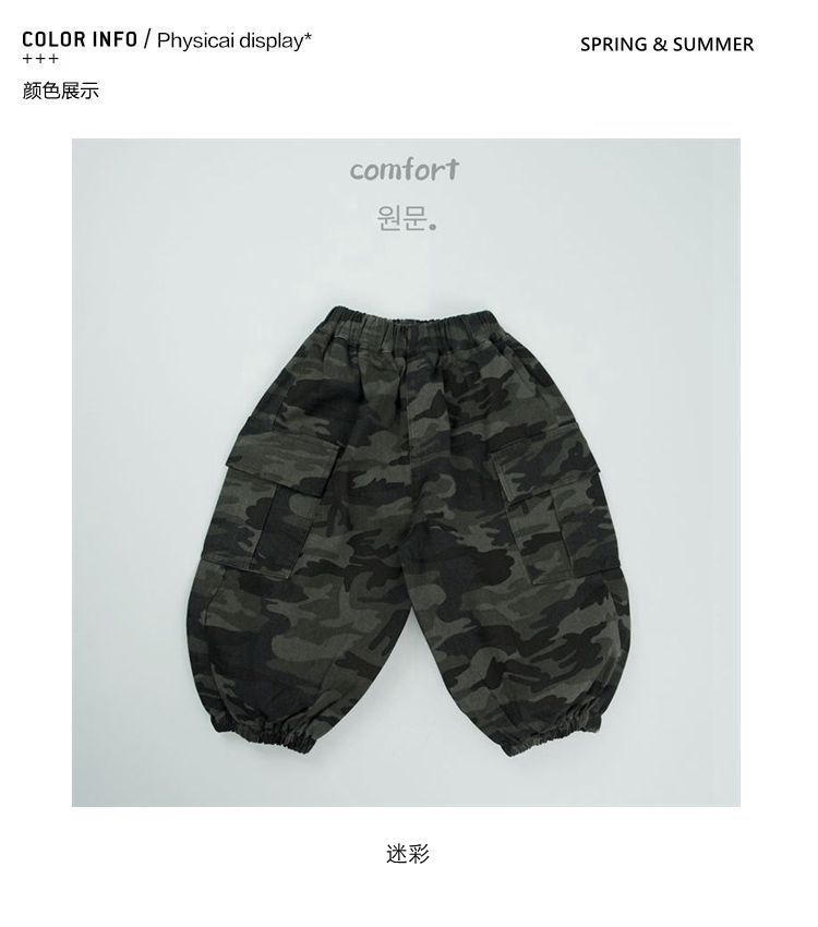 한국 스타일 2024 가을 새로운 어린이 미국 위장 블루머스 소년과 소녀 느슨한 크레인 바지 아기 유행 바지스토어 가기