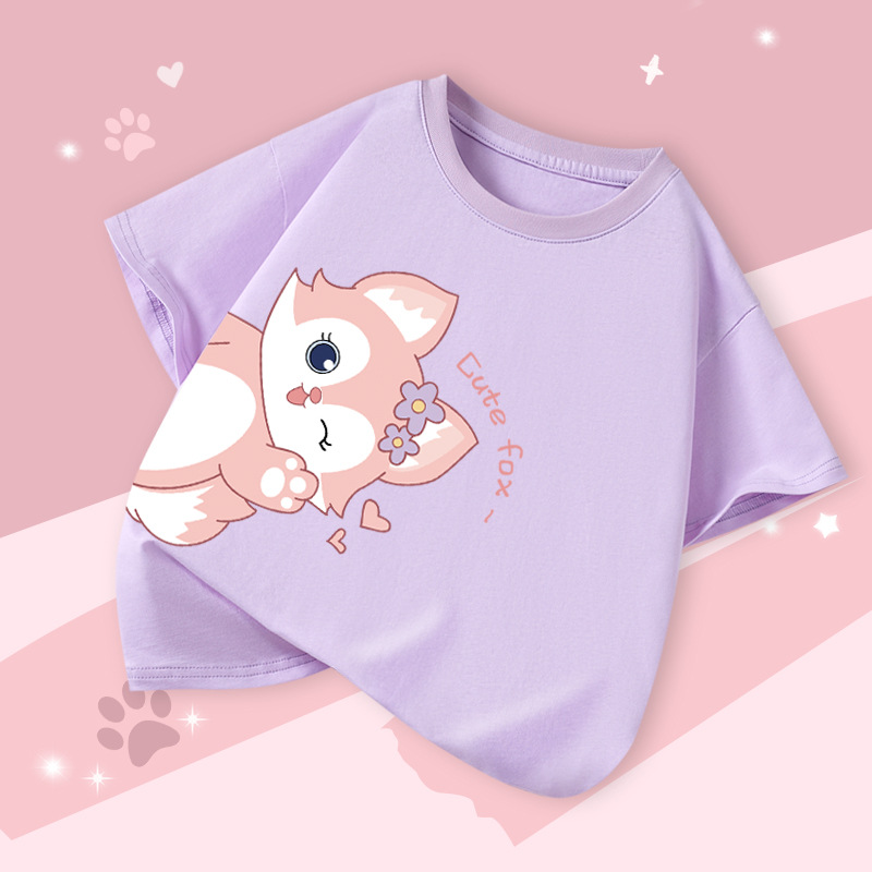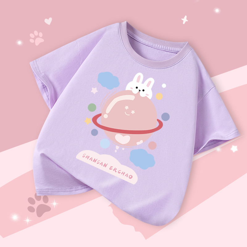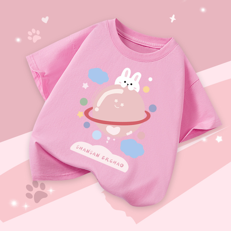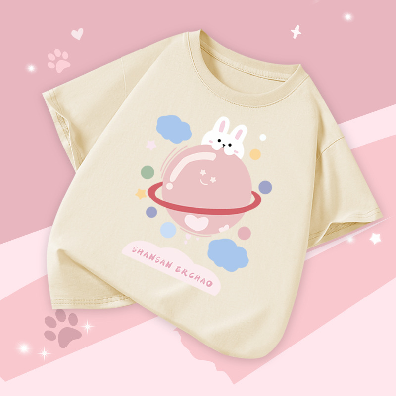 아동 의류 소녀 반팔 티셔츠 2025 여름 새로운 스타일 중대형 어린이 느슨한 버전 통기성 소녀 베이비 코튼 탑스토어 가기