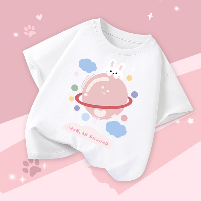 아동 의류 소녀 반팔 티셔츠 2025 여름 새로운 스타일 중대형 어린이 느슨한 버전 통기성 소녀 베이비 코튼 탑