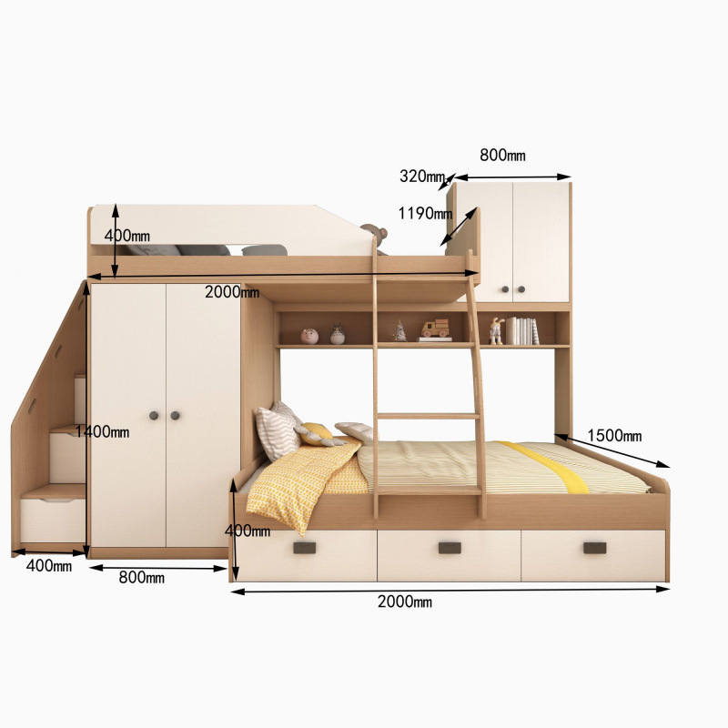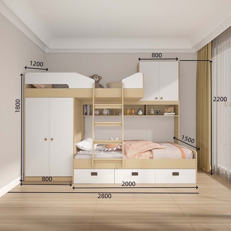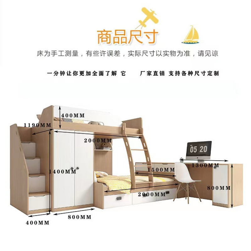 • 옷장 스타일 + 이층 침대 E0 등급 다층 원목 보드를 맞춤 설정할 수 있습니다.