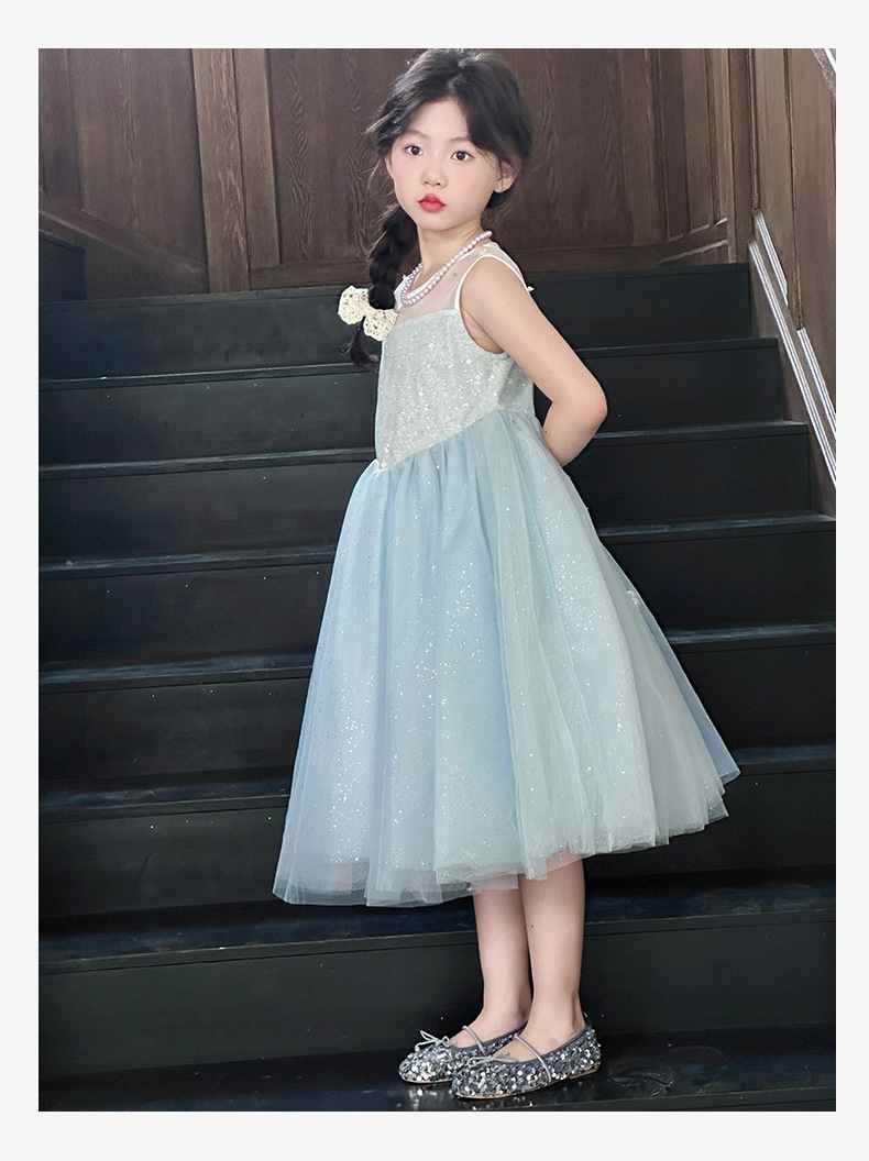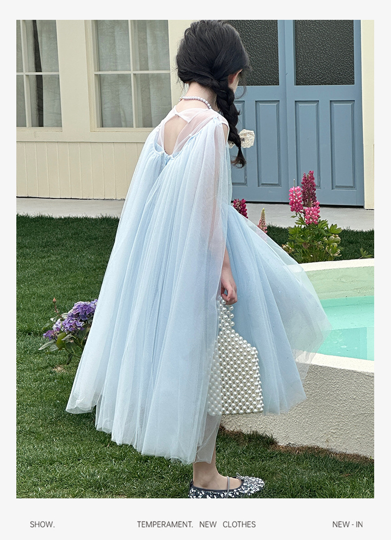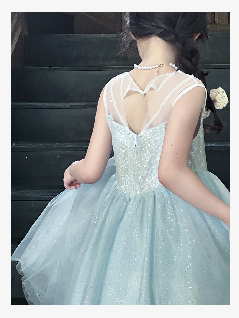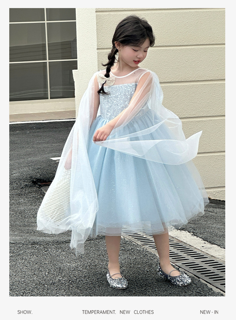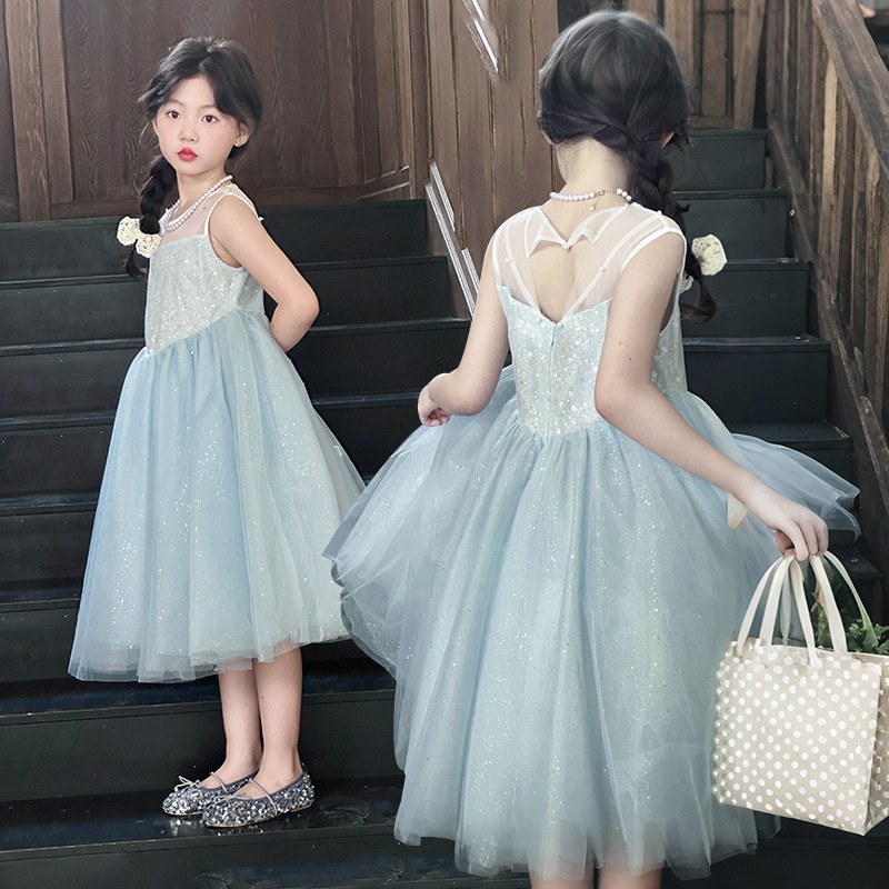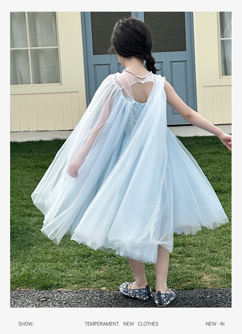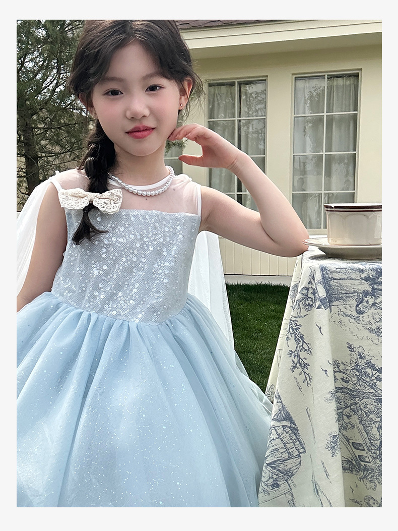 소녀의 여름 민소매 공주 엘사 원피스 서양식 2025 새로운 어린이 인터넷 축하 소녀의 라이트 업 목도리 스커트