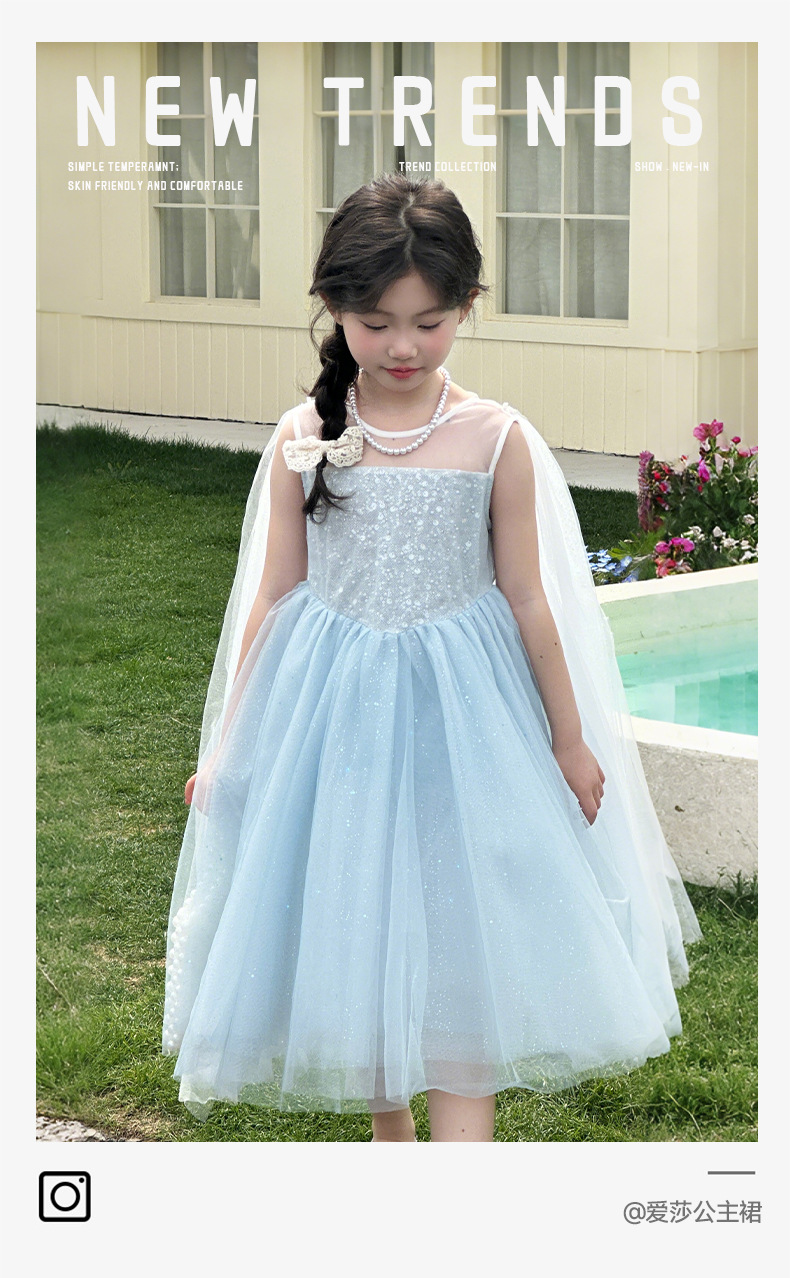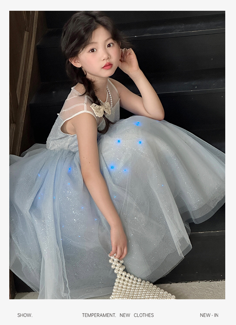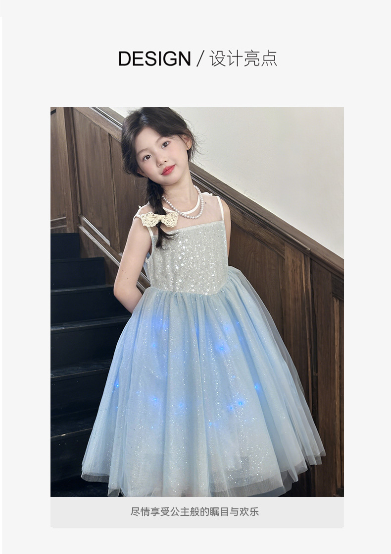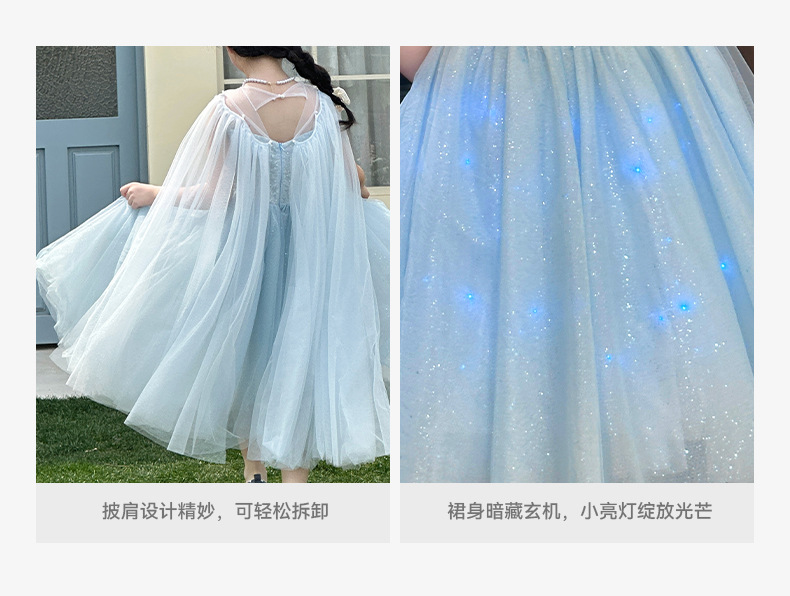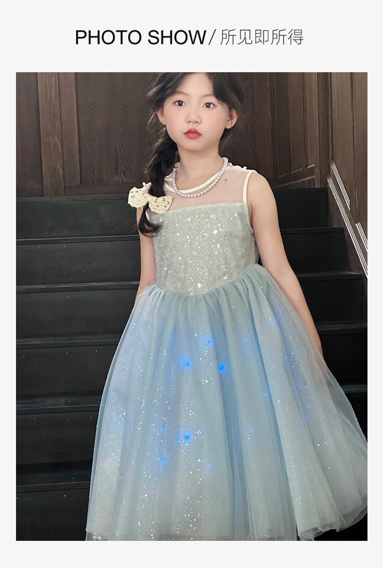 소녀의 여름 민소매 공주 엘사 원피스 서양식 2025 새로운 어린이 인터넷 축하 소녀의 라이트 업 목도리 스커트스토어 가기