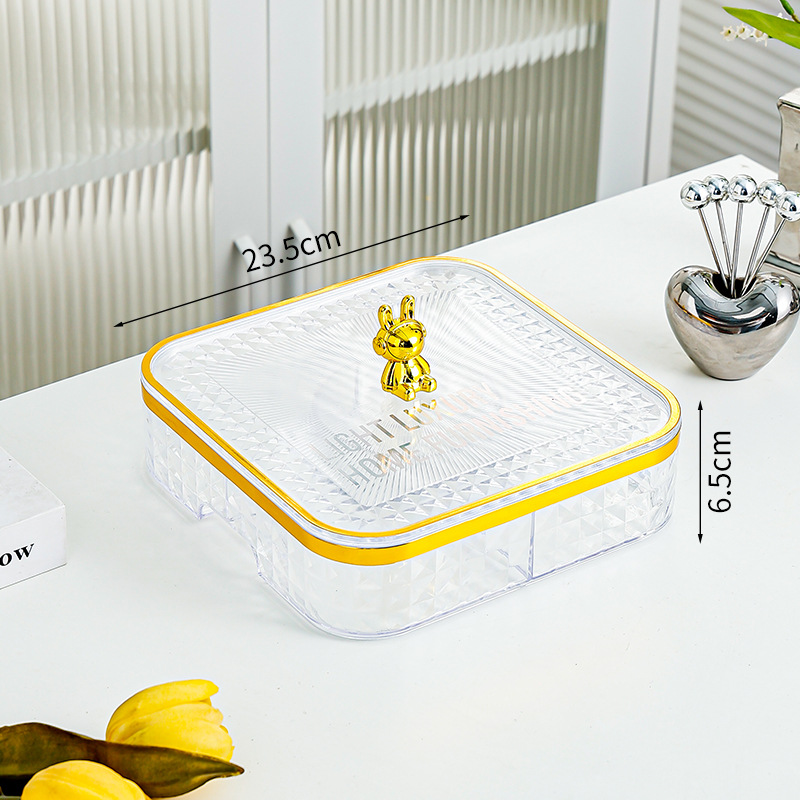 • 투명한 사각형 다이아몬드 은색 가장자리 단일 레이어 토끼 과일 접시 앉아