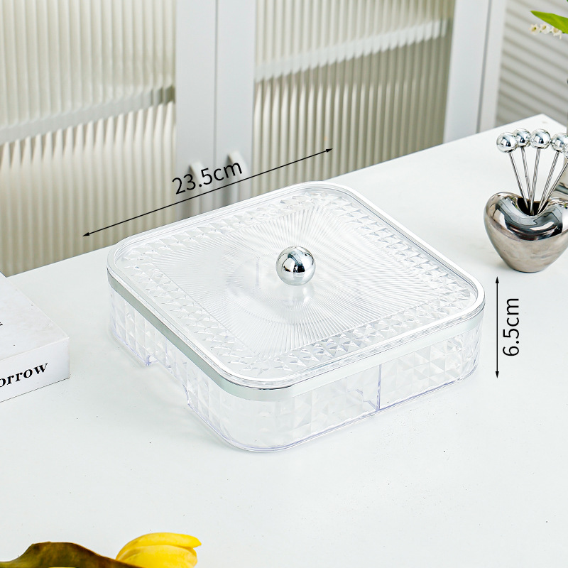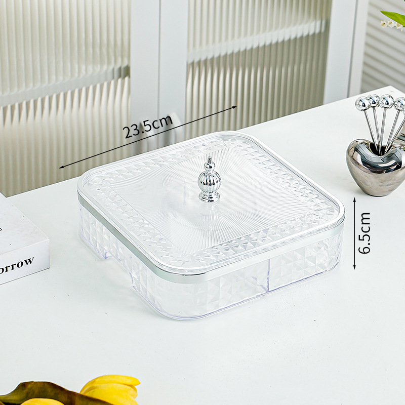 • 투명한 사각형 다이아몬드 실버 에지 단일 레이어 과일 접시(타워 비즈 포함)