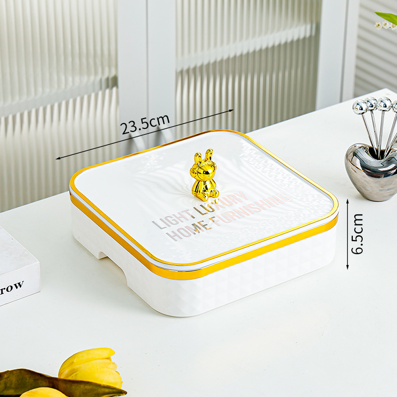 • 솔리드 화이트 스퀘어 다이아몬드 + LH 골드 엣지 단일 레이어 골드 래빗 과일 플레이트